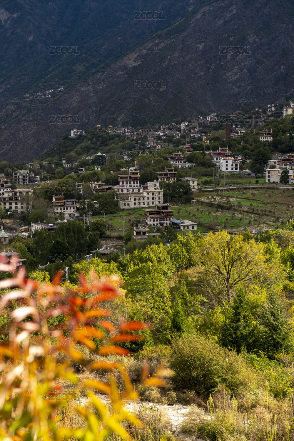 四川,甘孜州,丹巴县,中路藏寨,秋色,民居,秋天,田园风光,农田,树