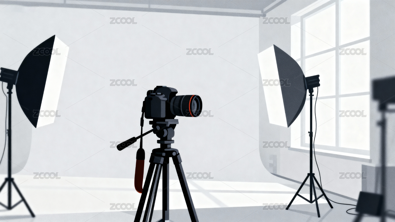 摄影工作室,摄影棚内的工作场景,前景是手机在记录工作场景