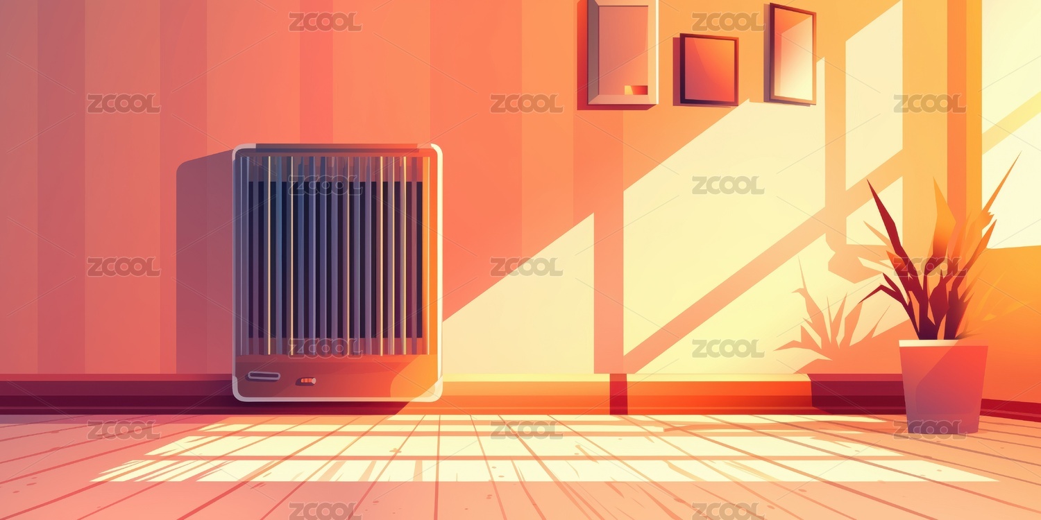 暖气上的房子和笑脸,冬季北方供暖主题图片