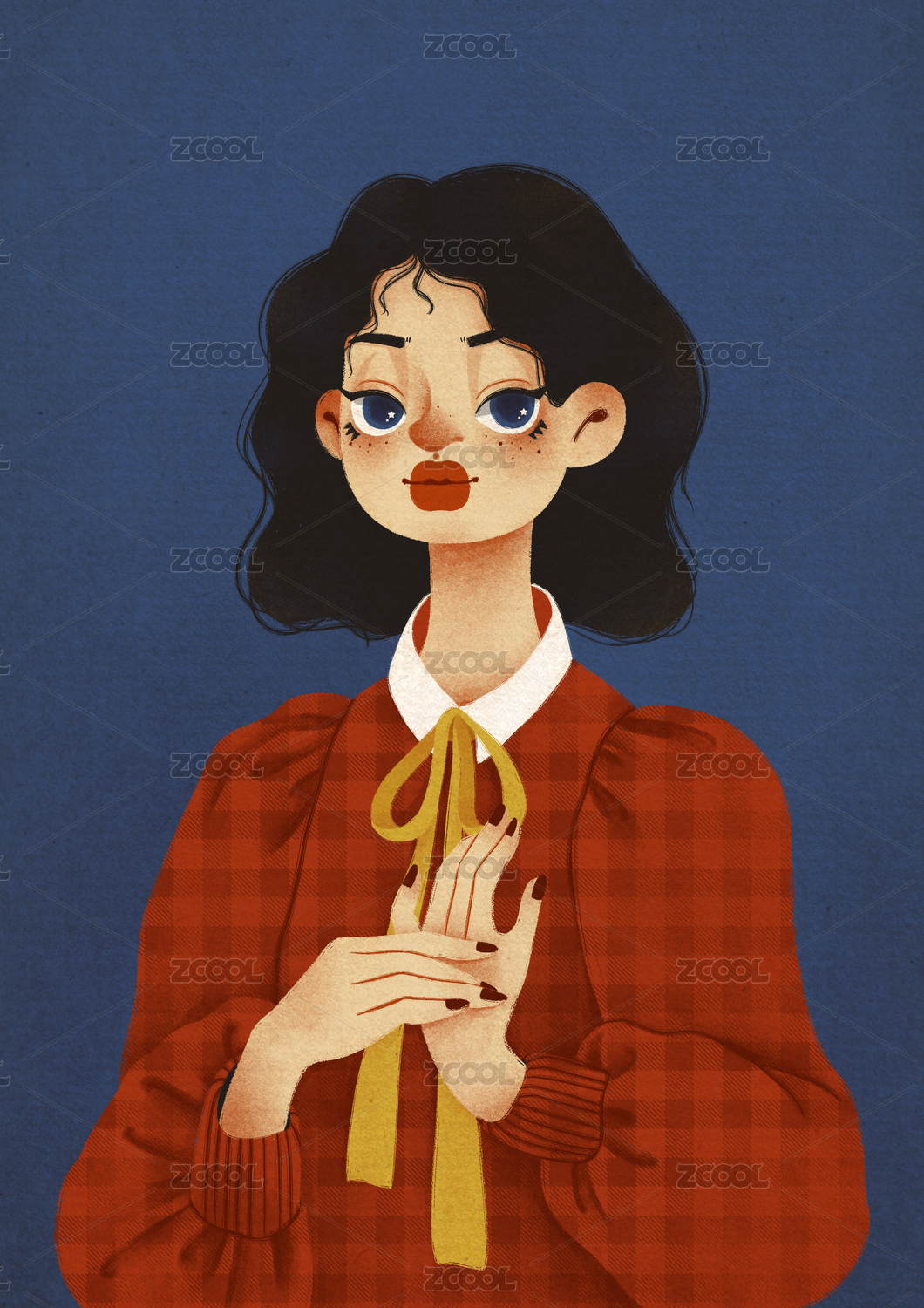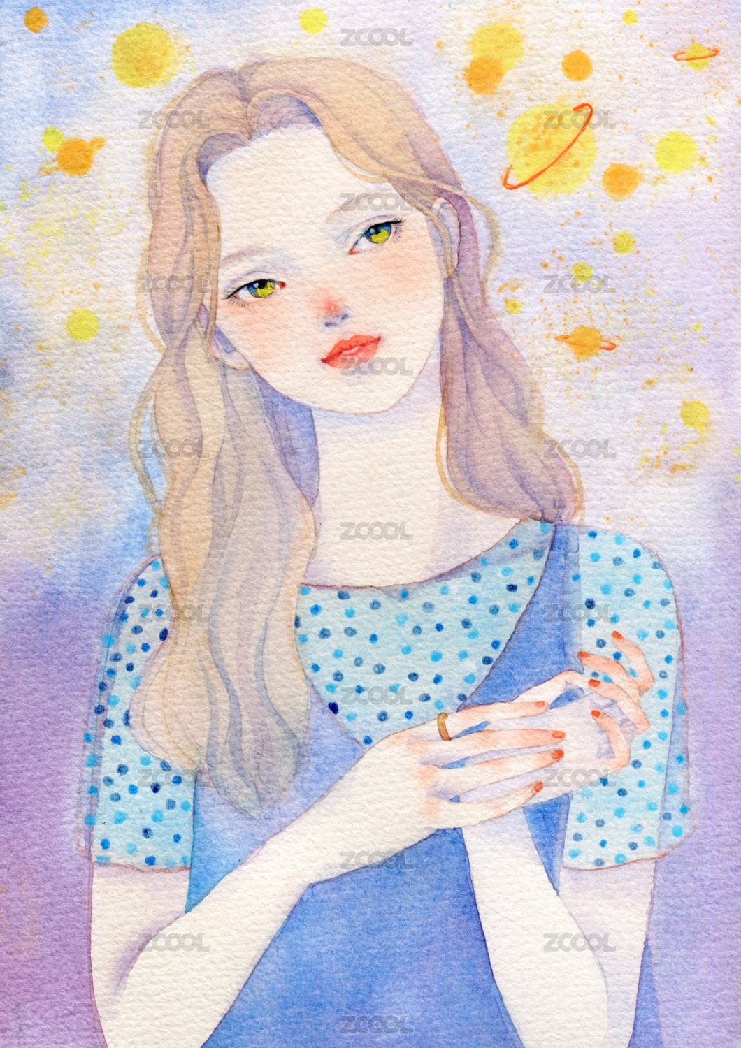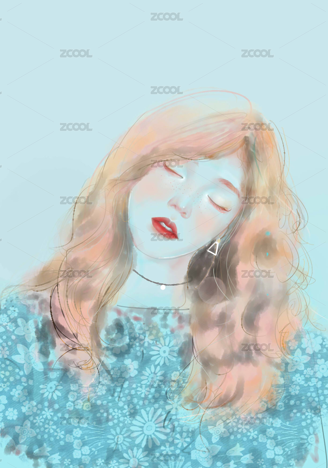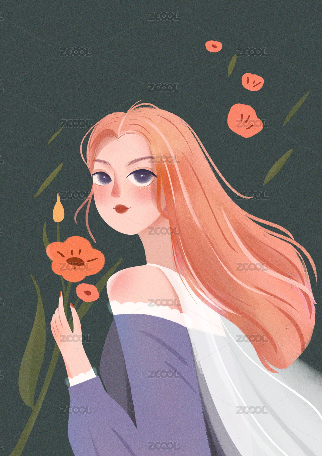 女孩,女生,人物,插画,头像,扁平,燥点,竖幅,HECSUI2020,金发