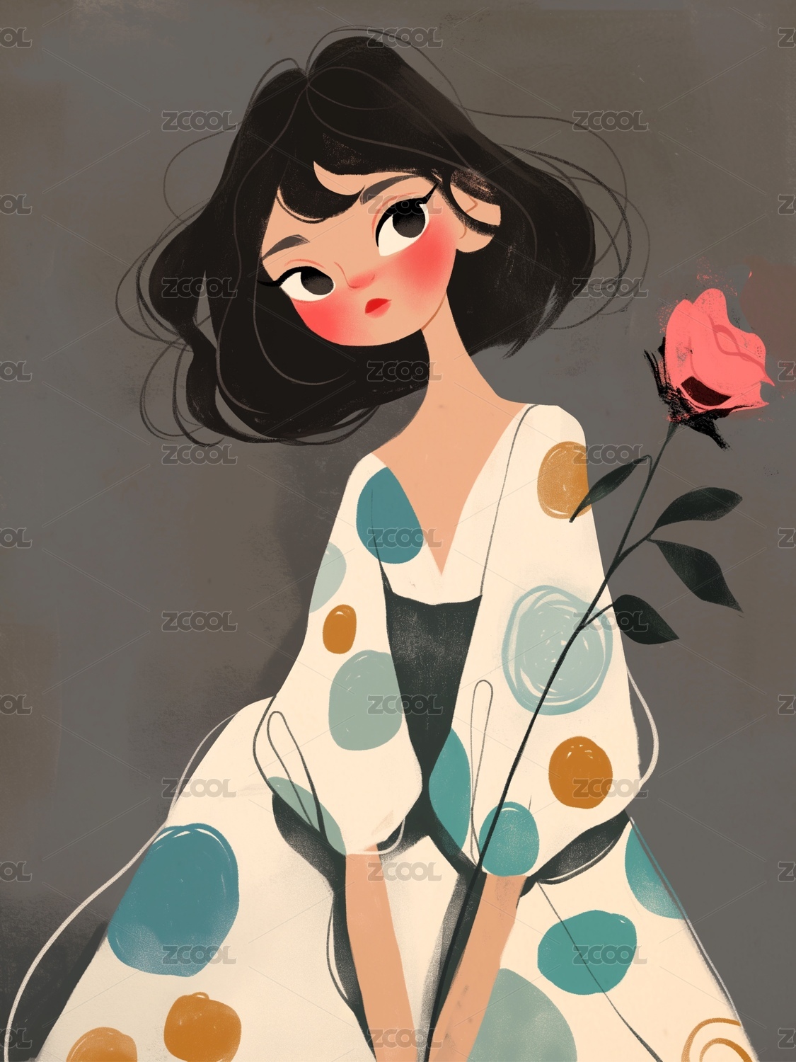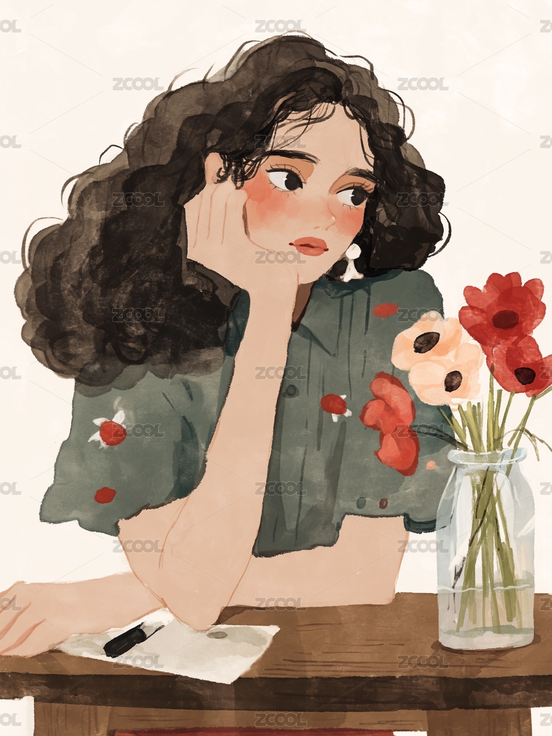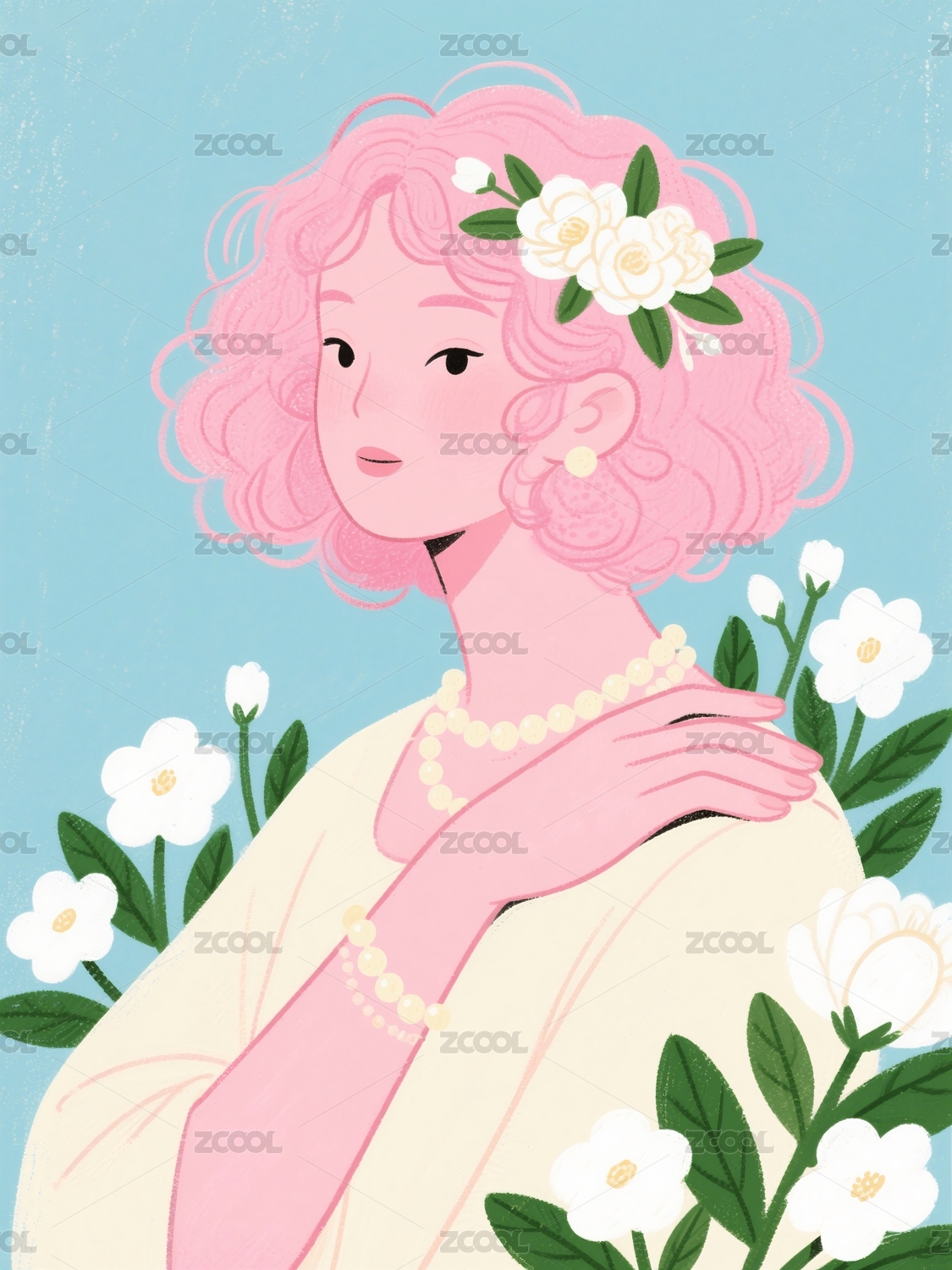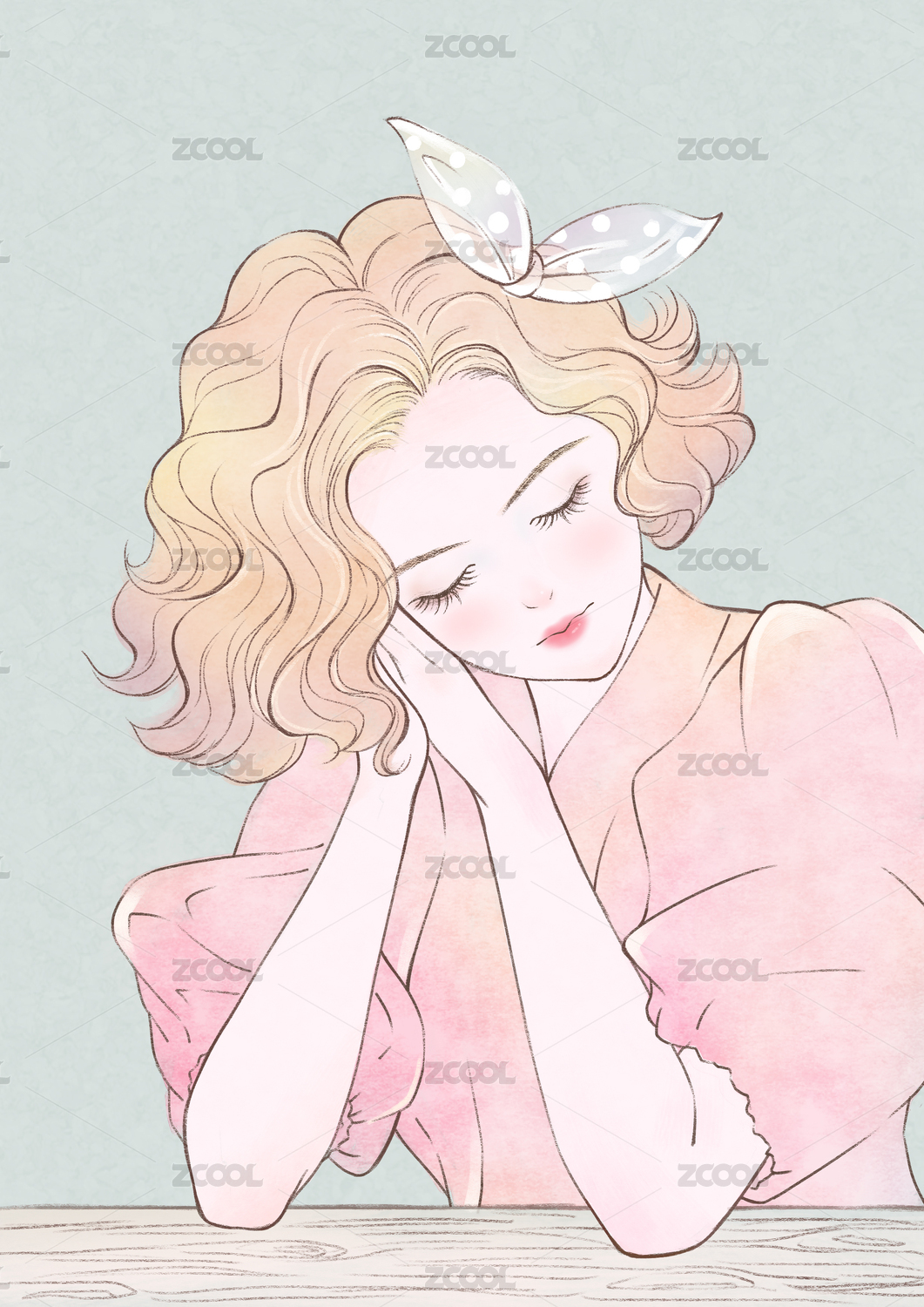 女孩,女生,人物,插画,头像,扁平,燥点,竖幅,HECSUI2020,金发