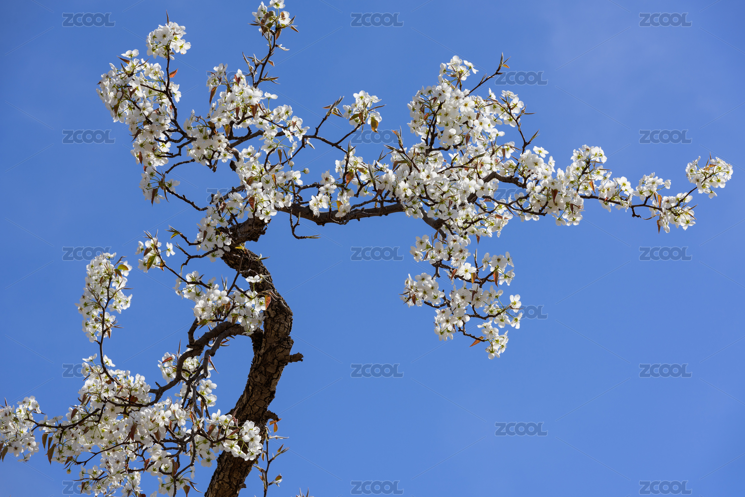 素材,背景,天空,蓝天,梨花,梨树枝,老梨树,彩色图片,户外,无人