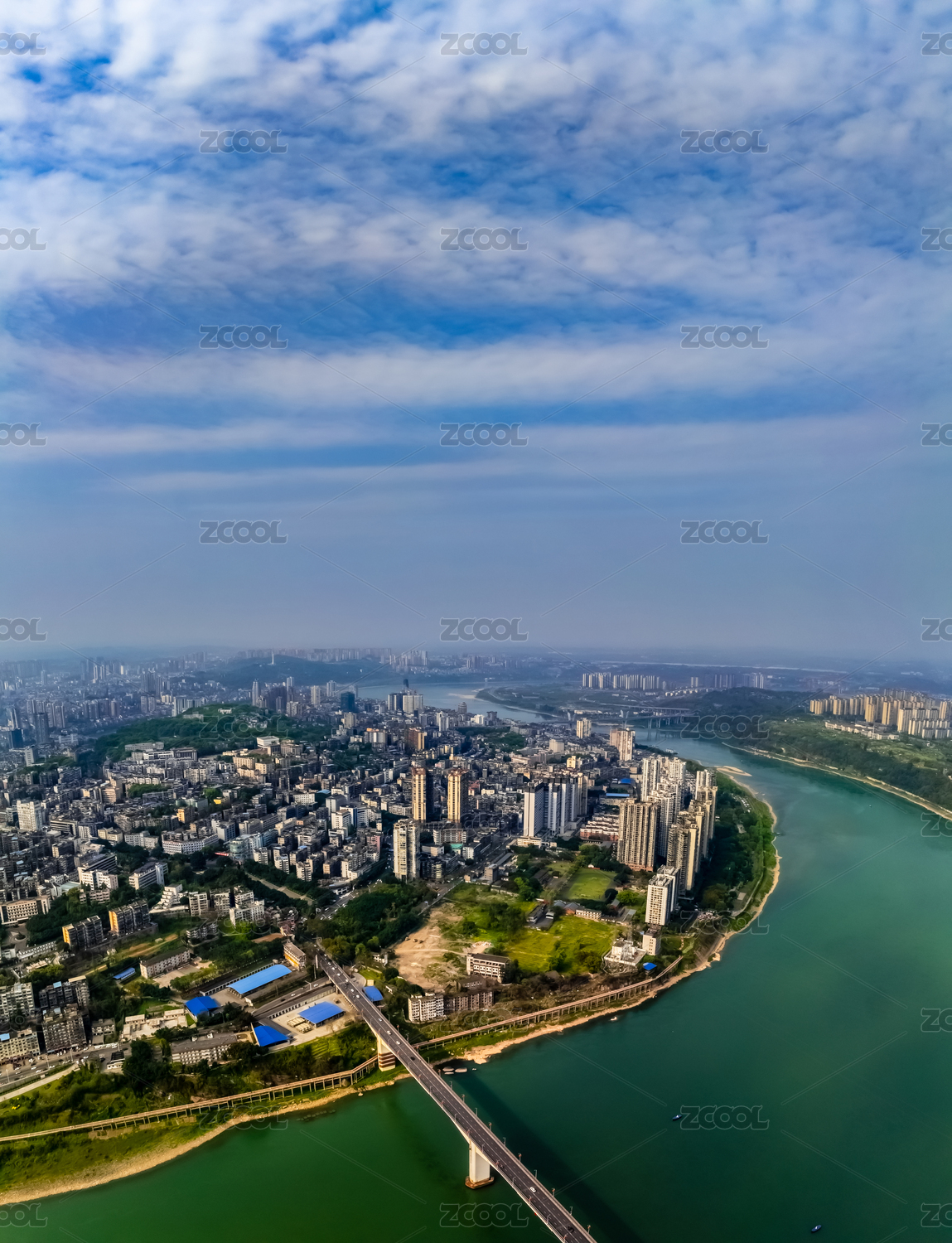 俯瞰四川泸州的国窖长江大桥和城市风景