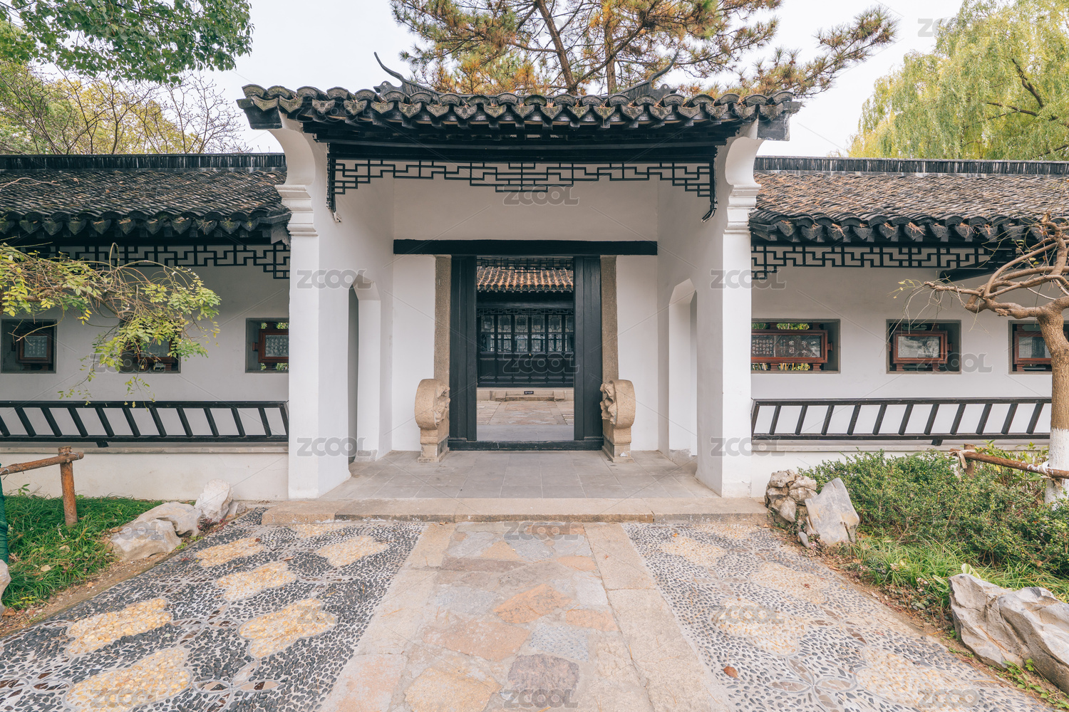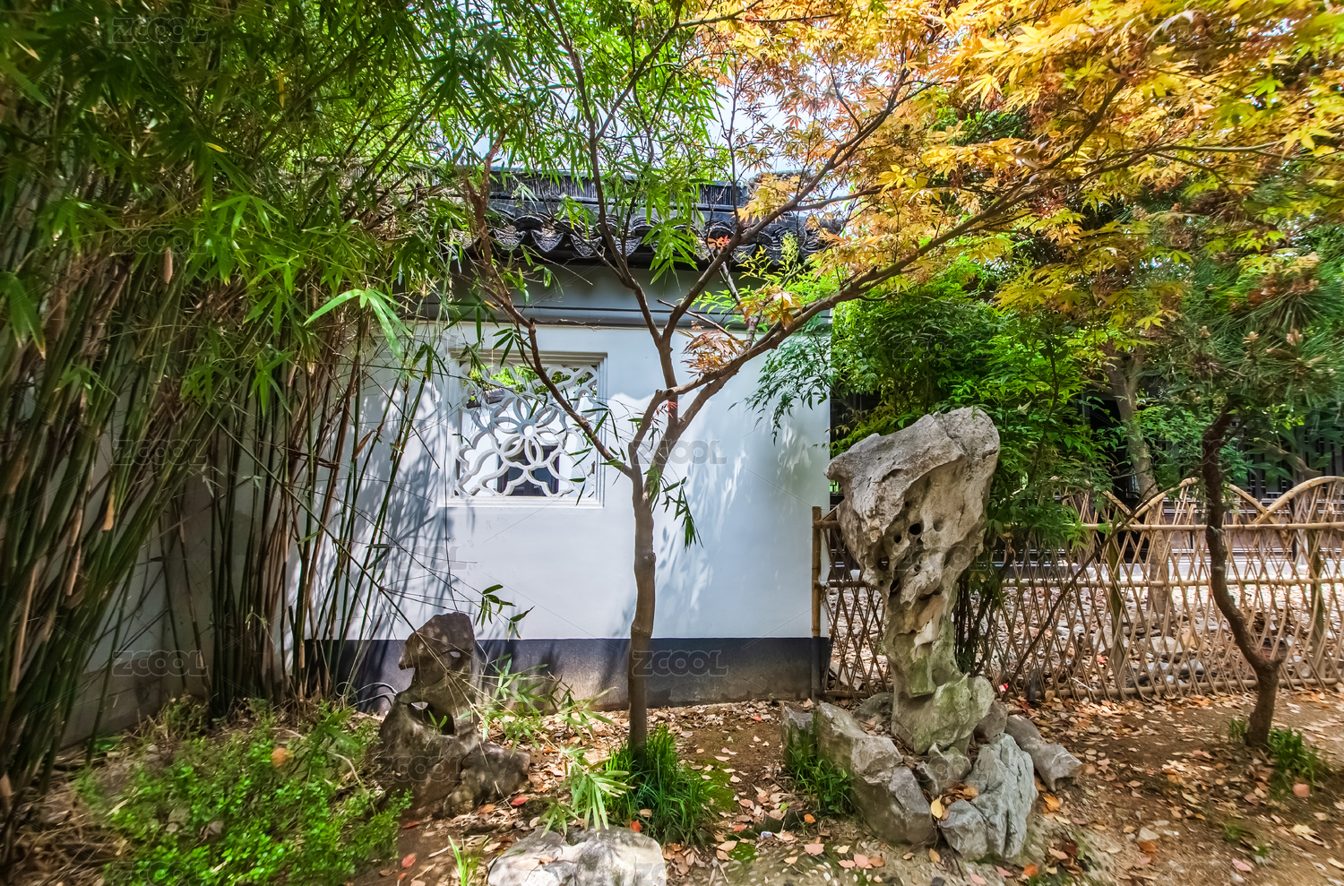 中国江苏省苏州市木渎镇严家花园园林建筑
