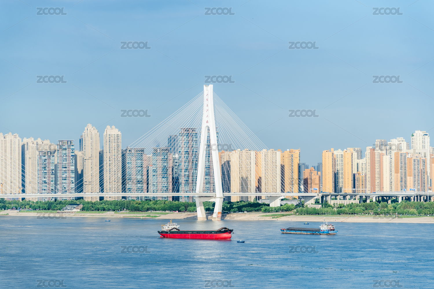武汉,长江,长江二桥,桥梁,夏季,蓝天白云