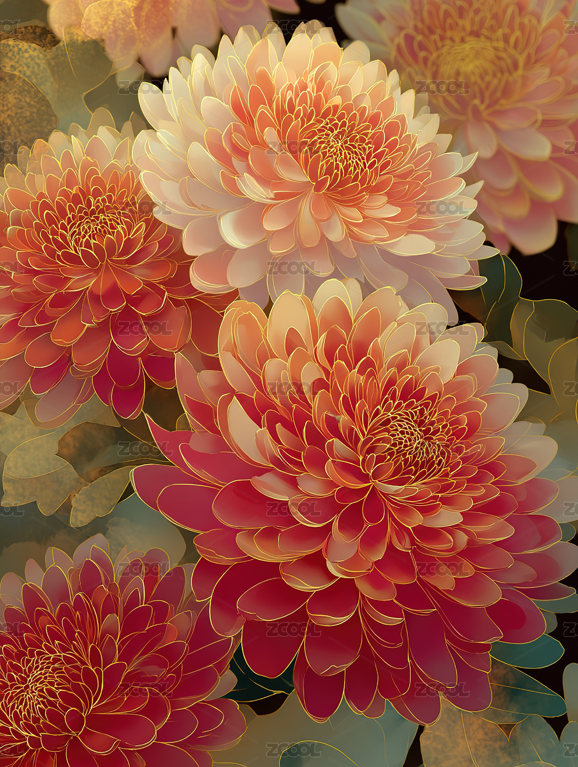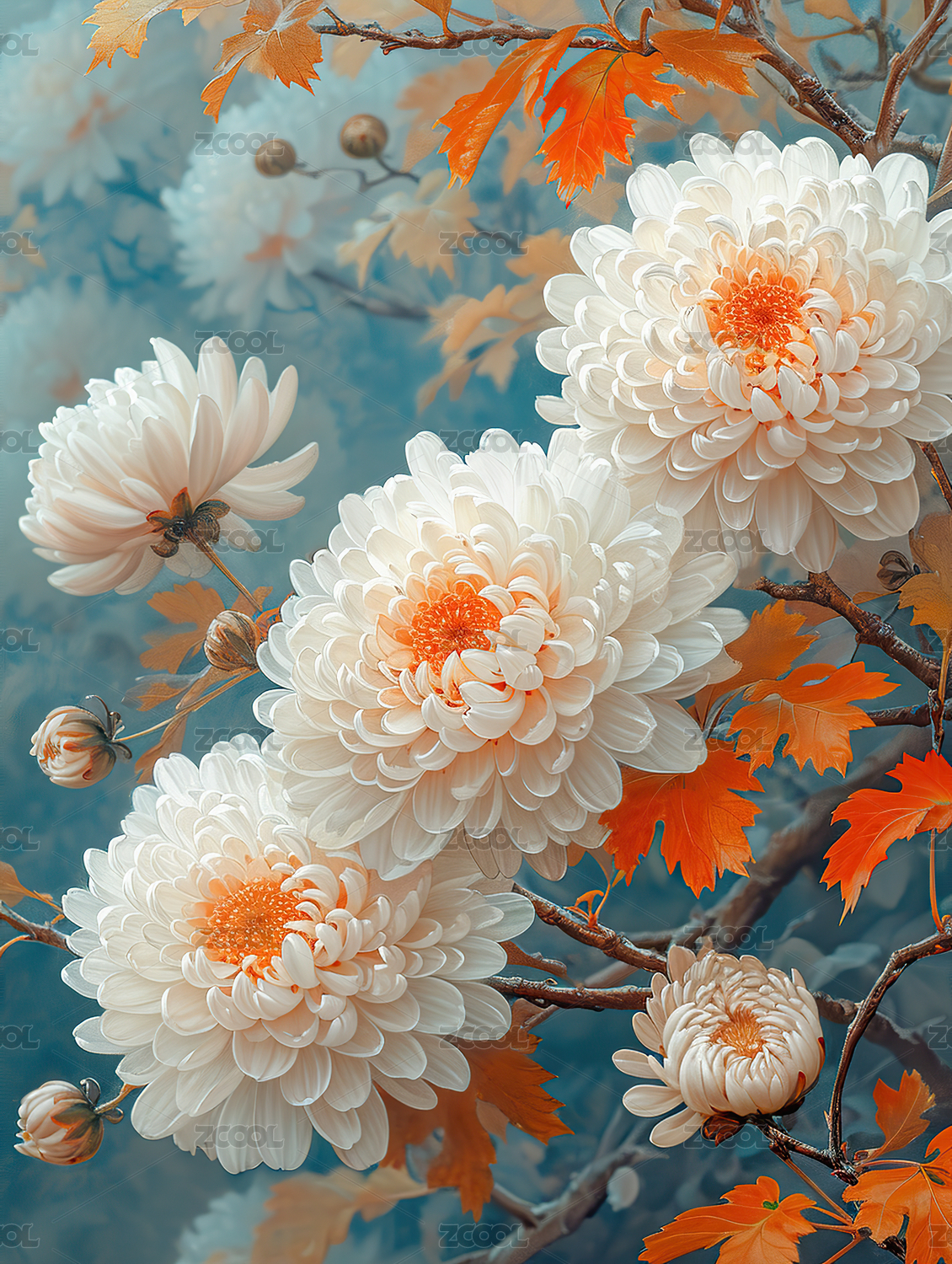 菊花,盛开,绽放,花朵,一簇花,水彩,插画,绘画,特写,花束
