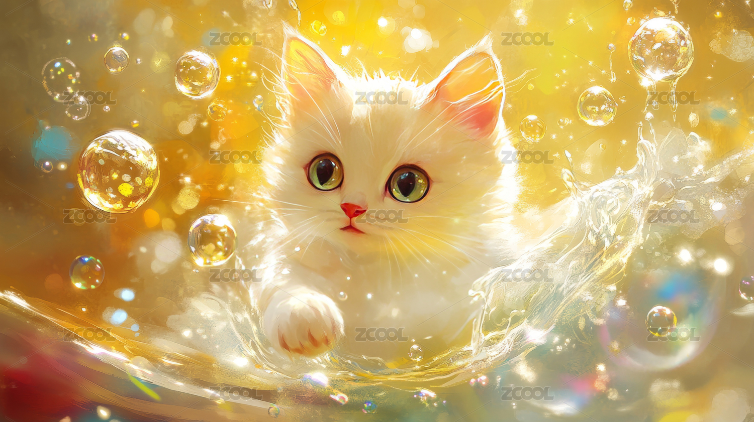 猫咪,卡通,插画,水下,可爱元素,可爱设计,可爱图案,可爱质感,可爱色彩