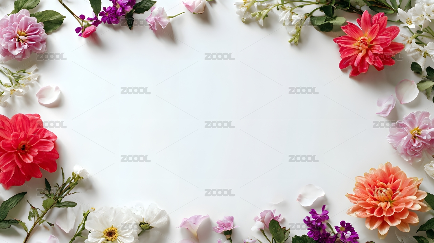多彩鲜花环绕的空白背景