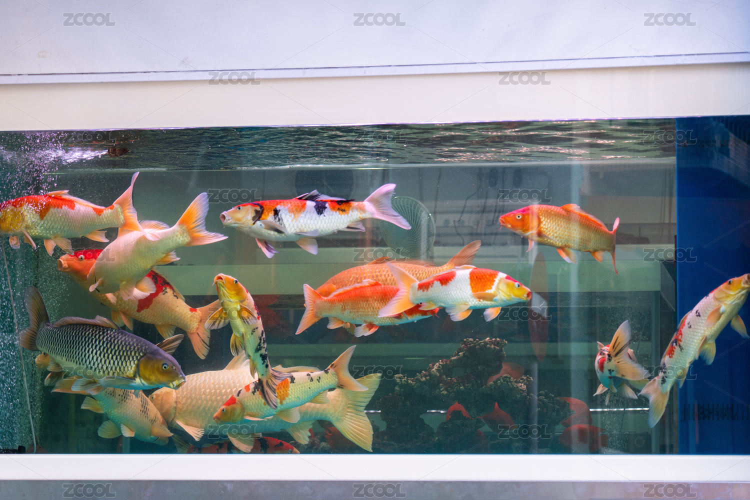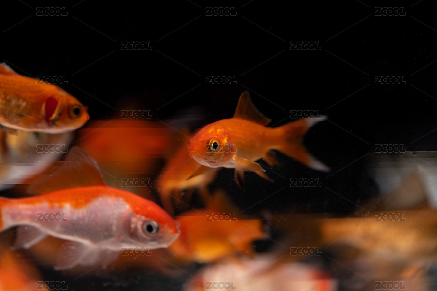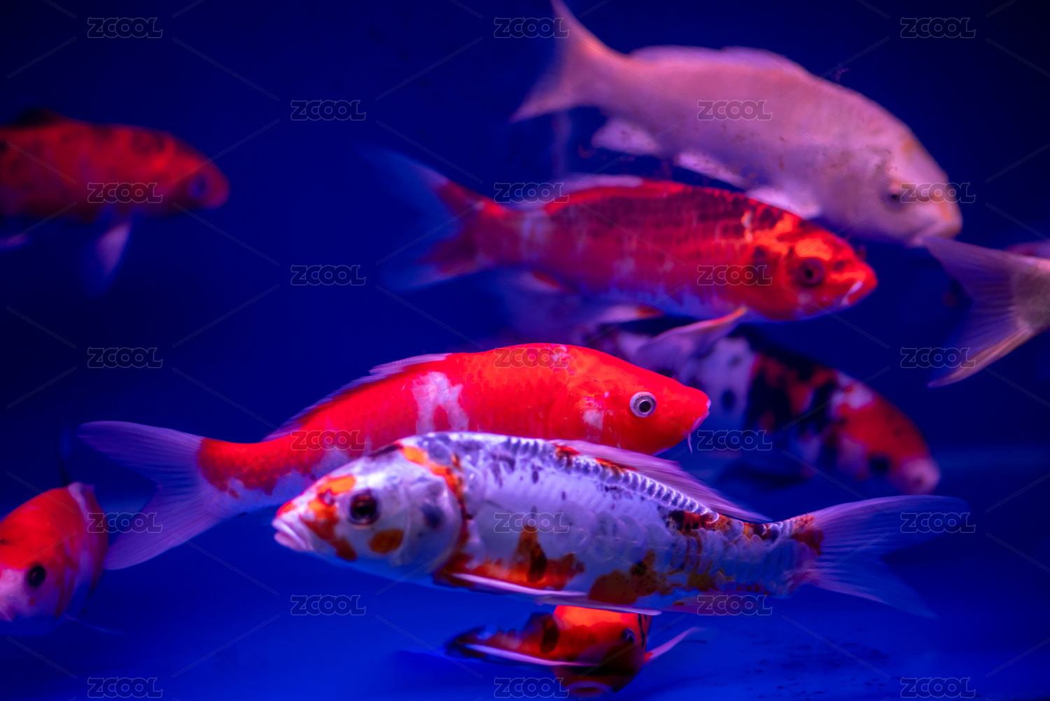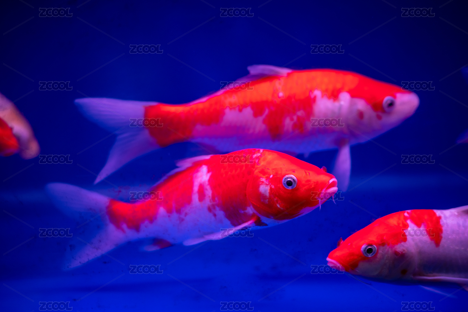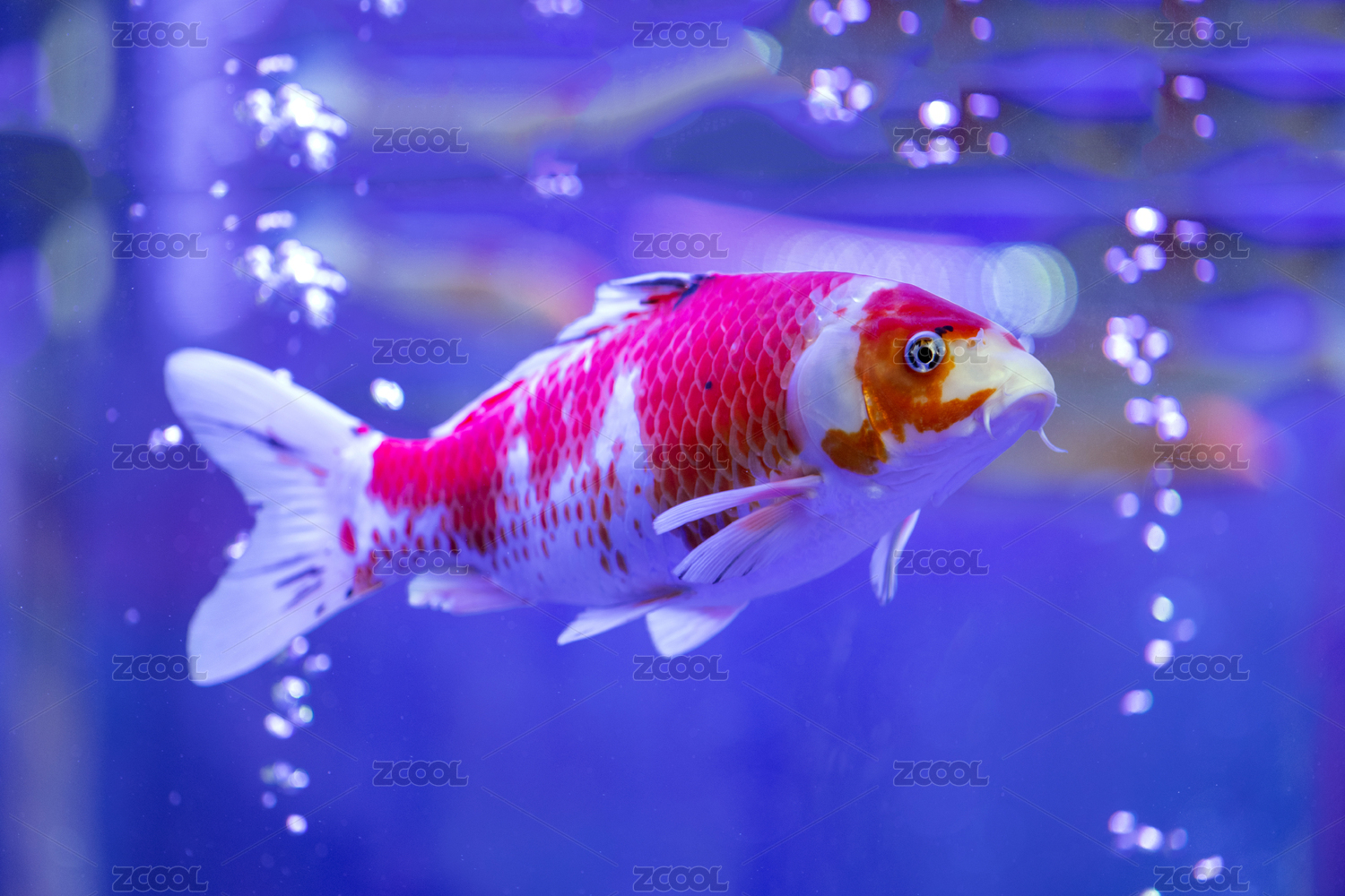金鱼,鱼缸,游动,蓝色,斑点,红色,白色,自由,水中,水下