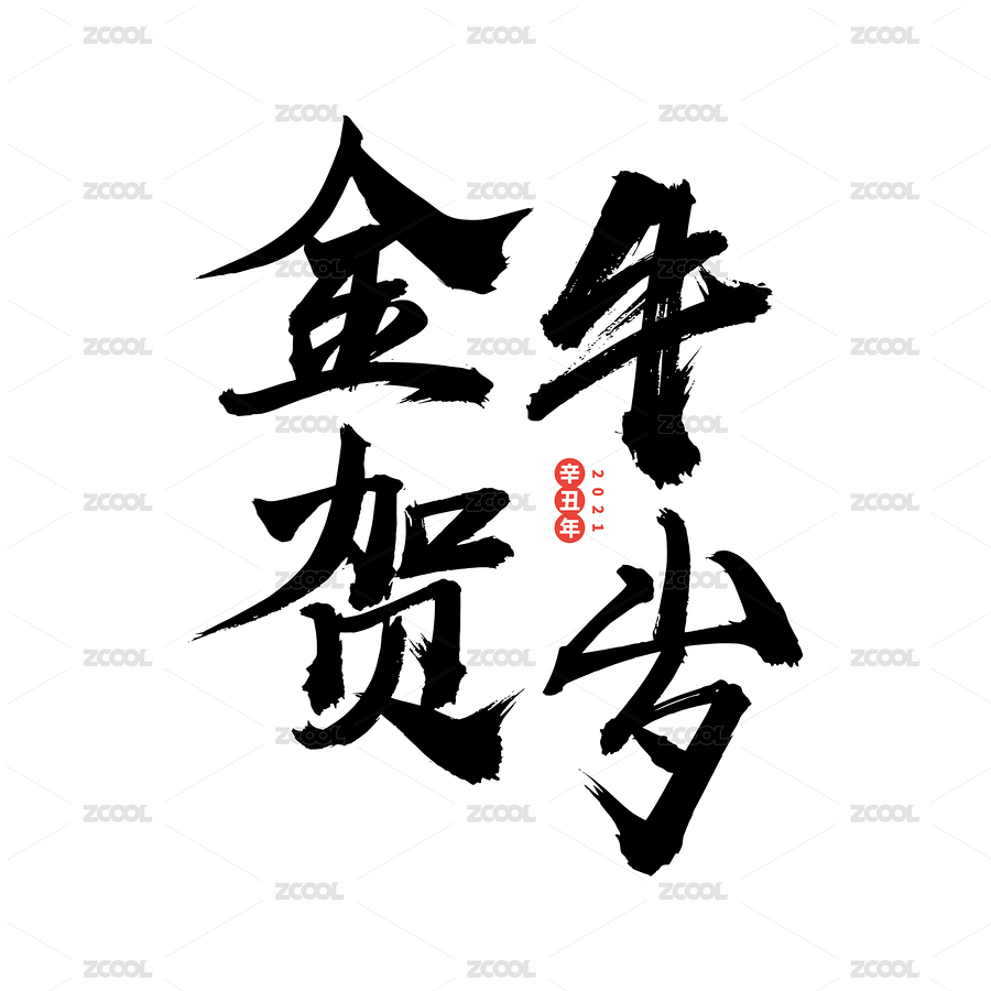 金牛贺岁,汉字手写书法字体