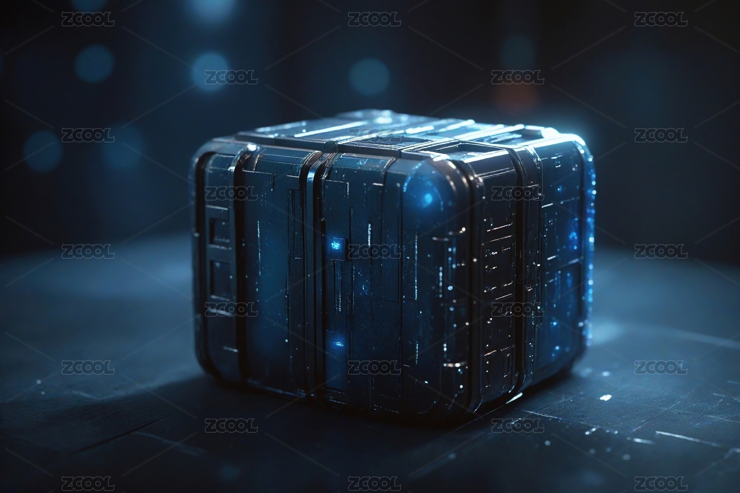 立方体,神秘,科幻,未来感,光线,反射,阴影,蓝色,黑暗,抽象