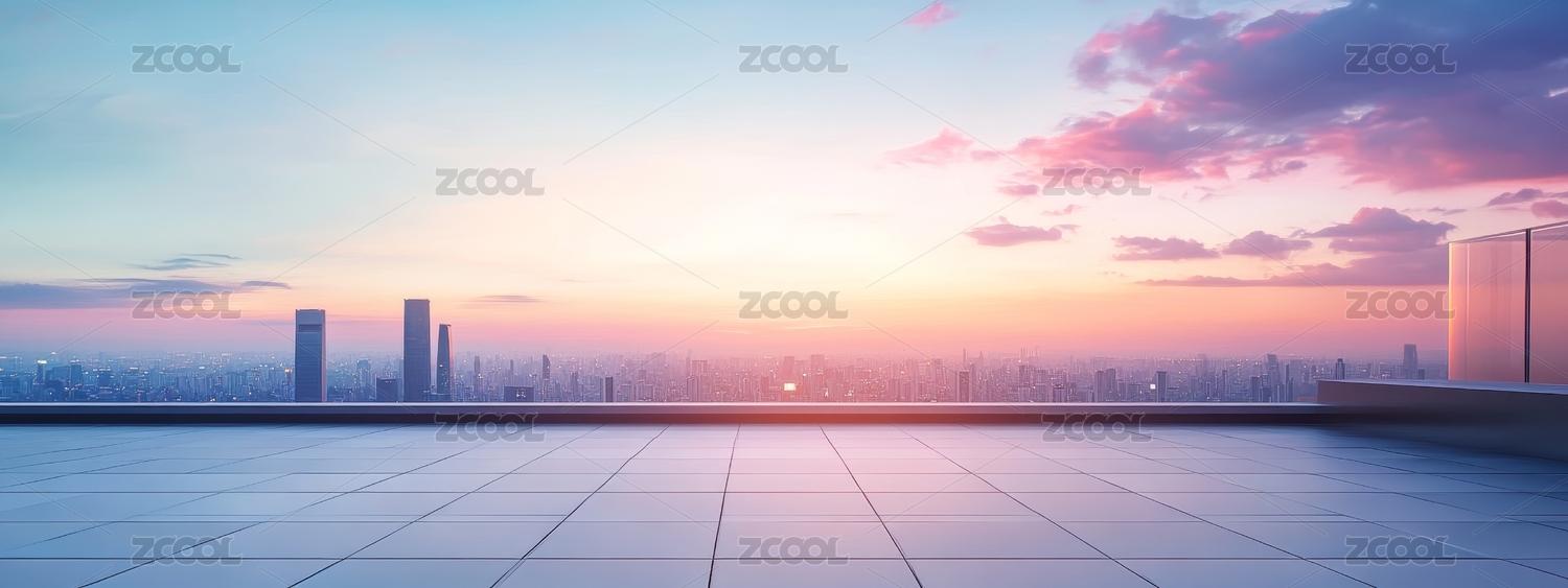 抽象插画风商业写字楼,城市天际线玻璃幕墙