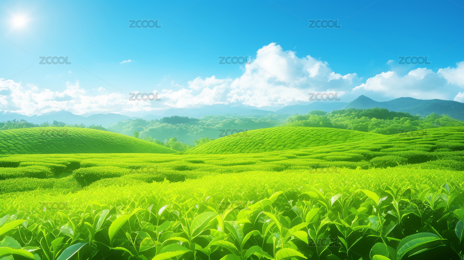 茶园,日落,山丘,绿色,植物,木板,路,阳光,天空,云层