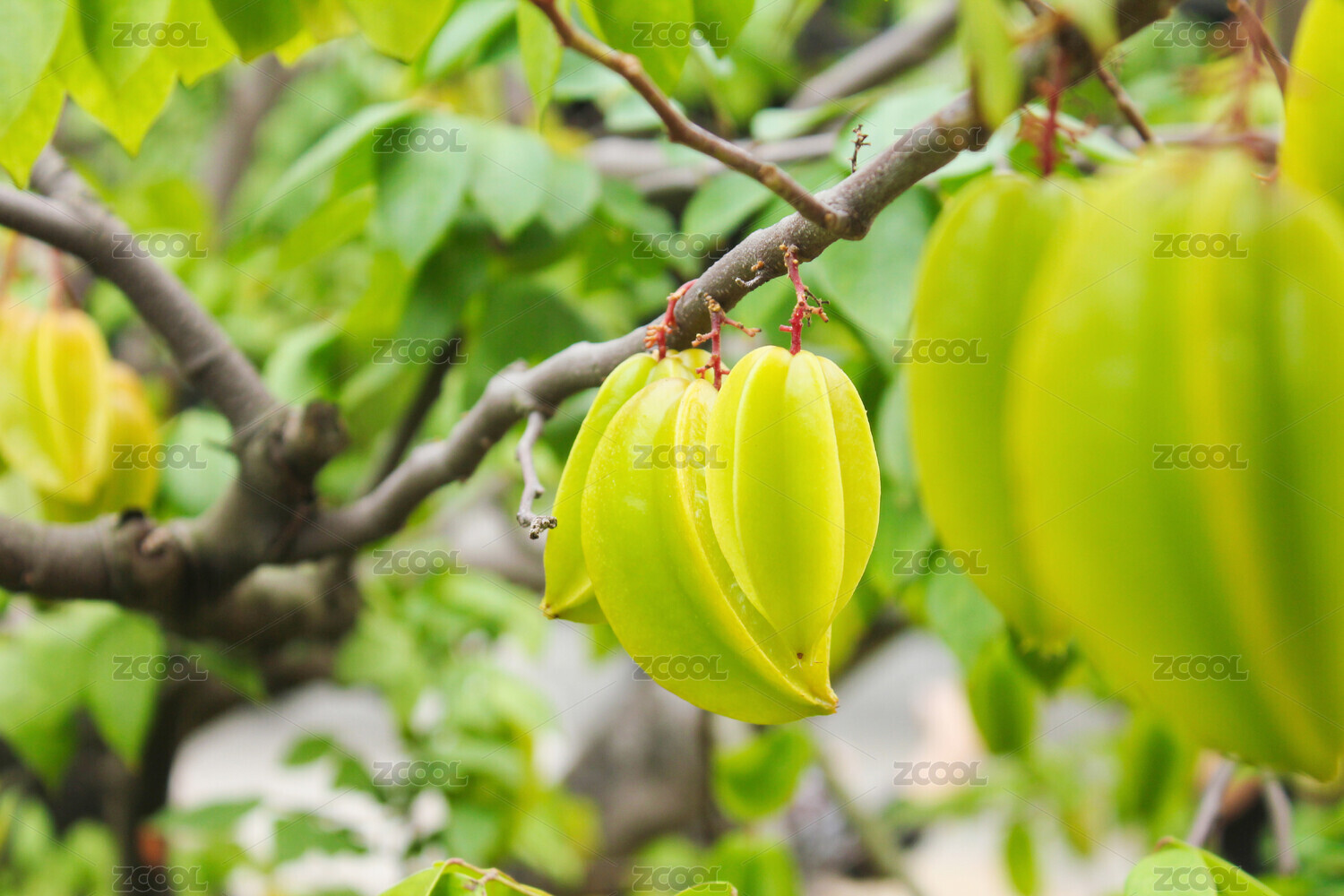 夏天百香果树藤上的一个绿色新鲜的百香果特写