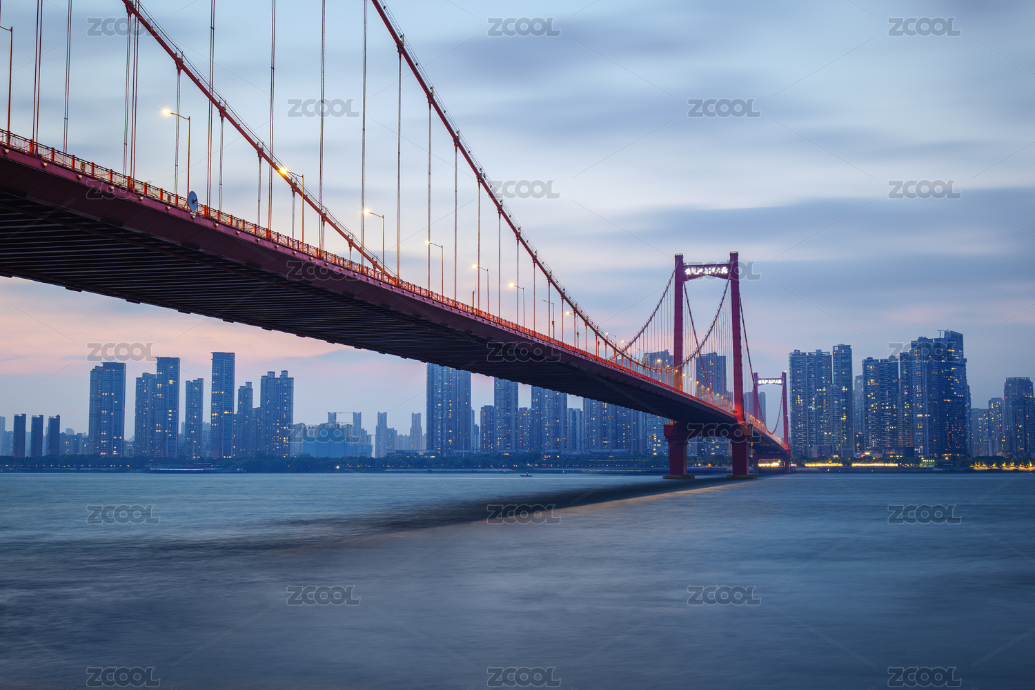 中国湖北武汉鹦鹉洲长江大桥黄昏