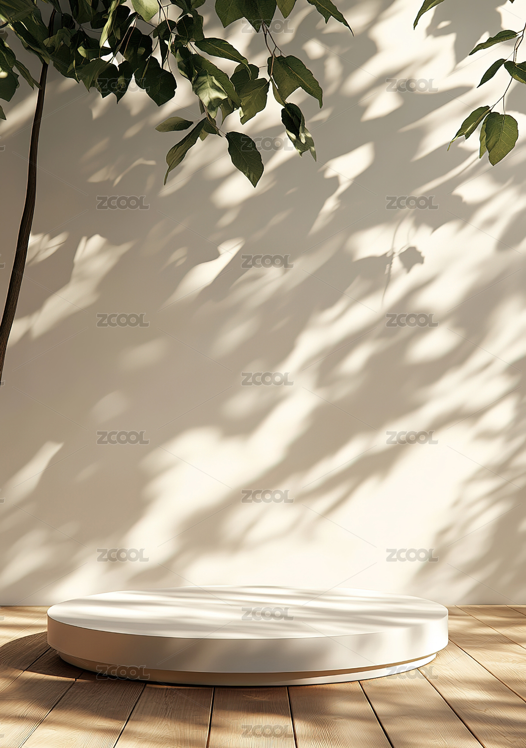 简约圆形平台与植物在柔和光线下