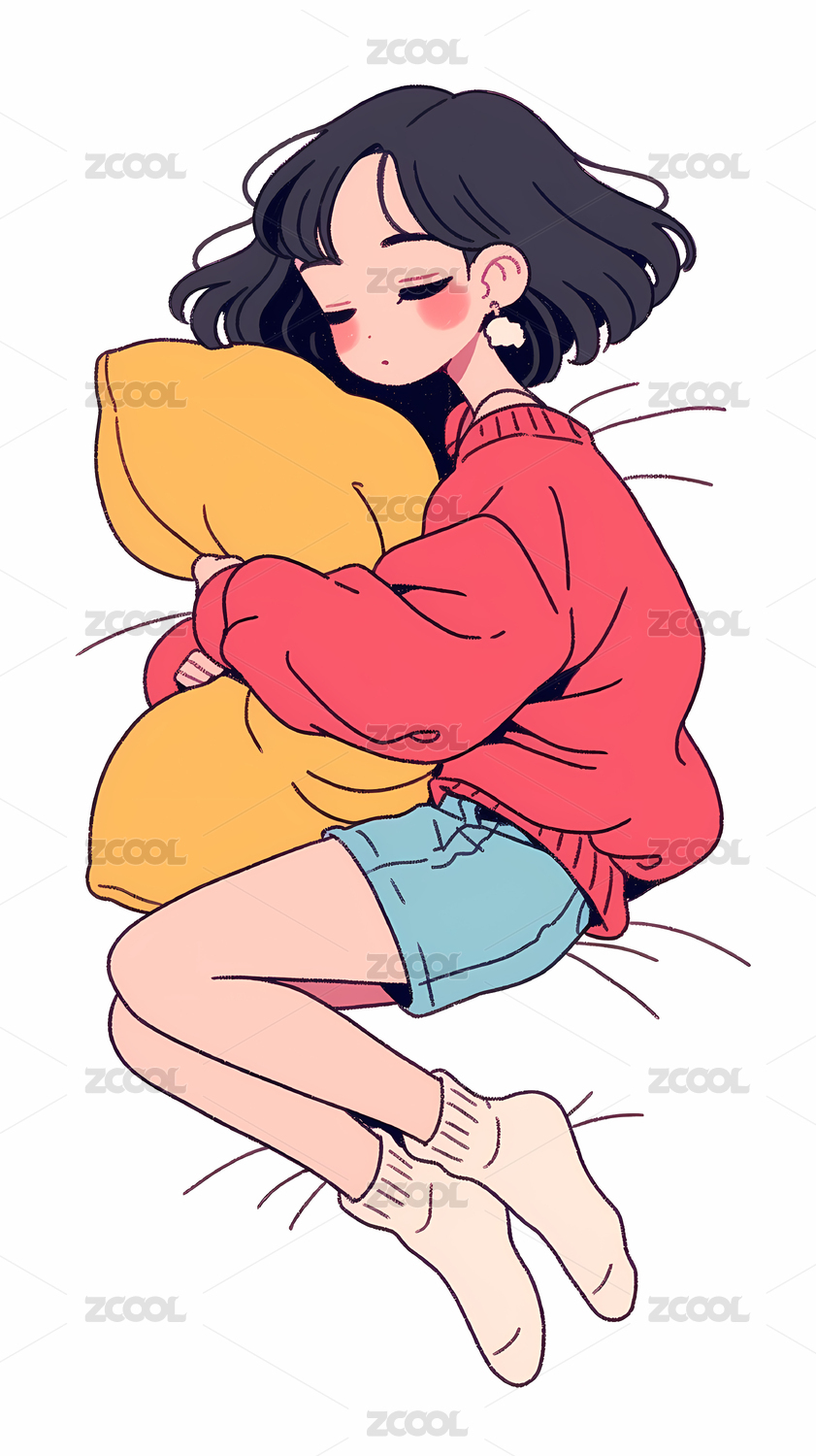 睡觉女孩角色矢量插画