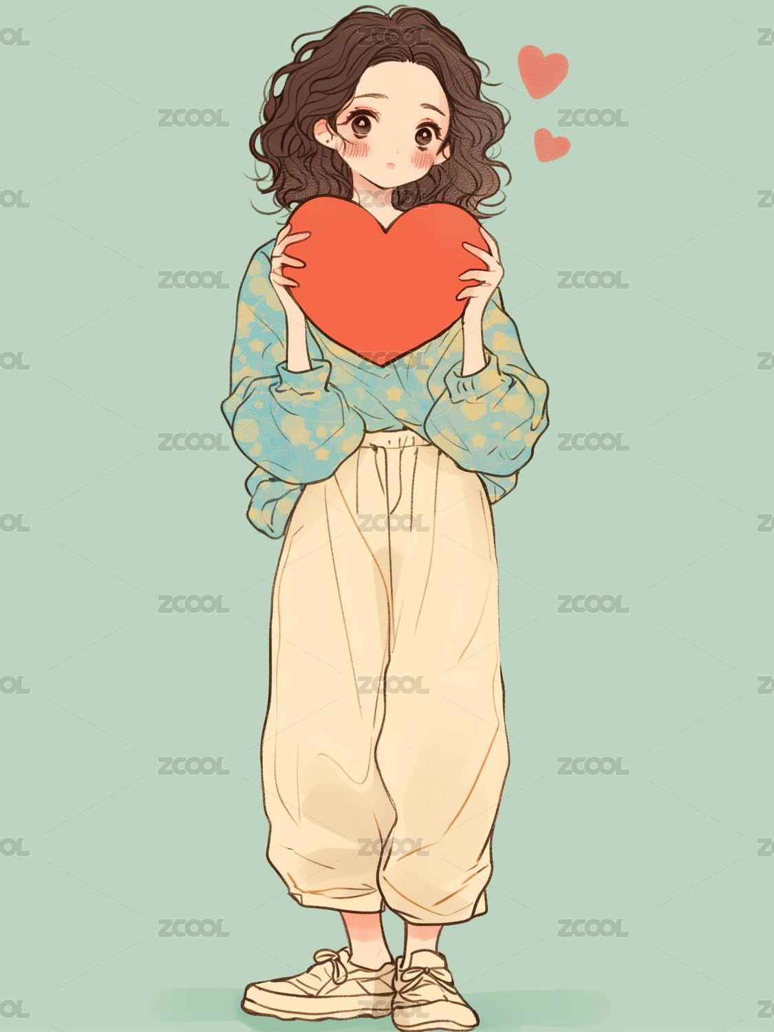 手捧爱心的女孩插画