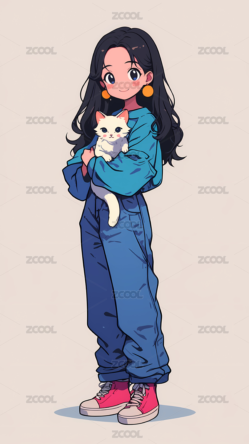 养猫女生角色矢量插画