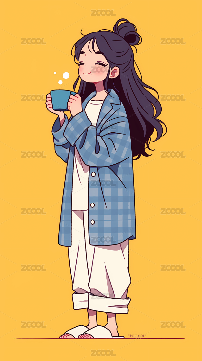 穿睡衣的女生角色矢量插画