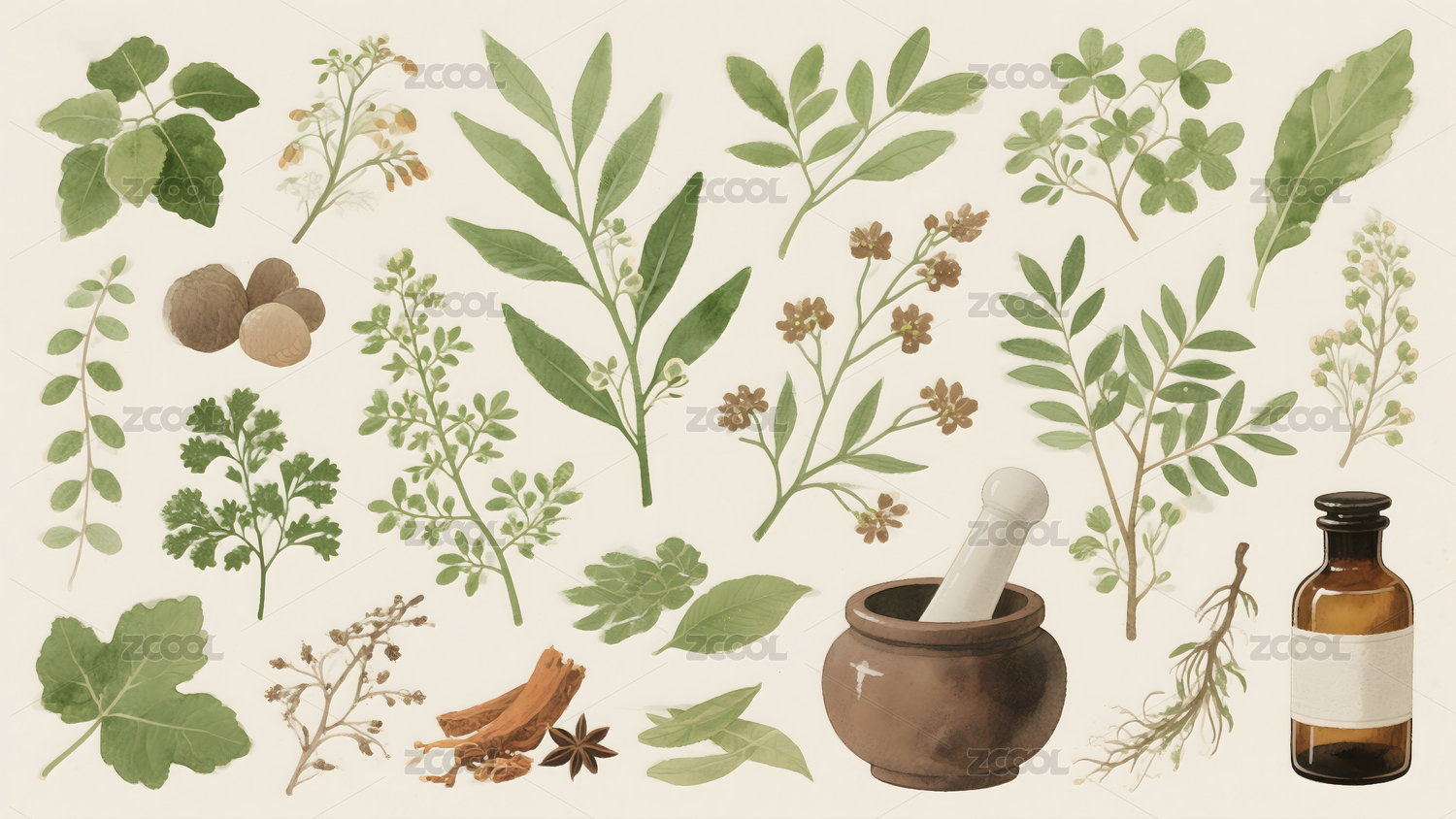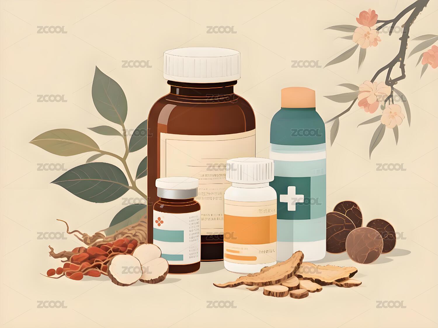 中医药材成分手绘插画