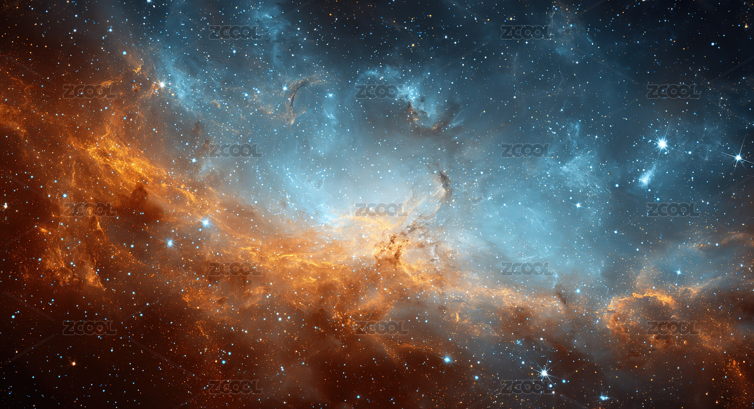 橙蓝星云点缀星空壮丽画面