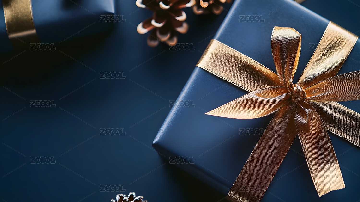 深蓝色礼品盒俯视图情人节惊喜礼盒概念插图