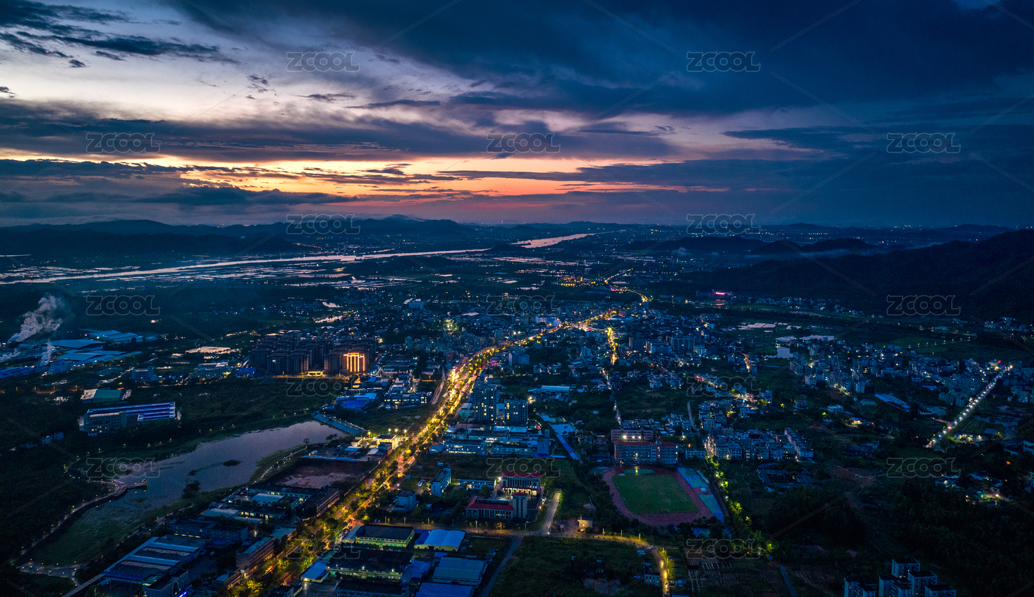 中国广东省深圳市龙岗区大运中心黄昏火烧云