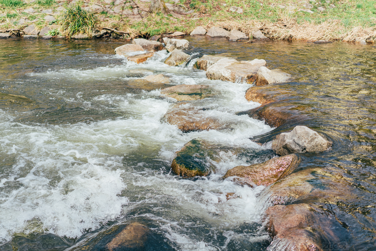 白昼南昆山石河奇观灰色礁石与流动的溪水