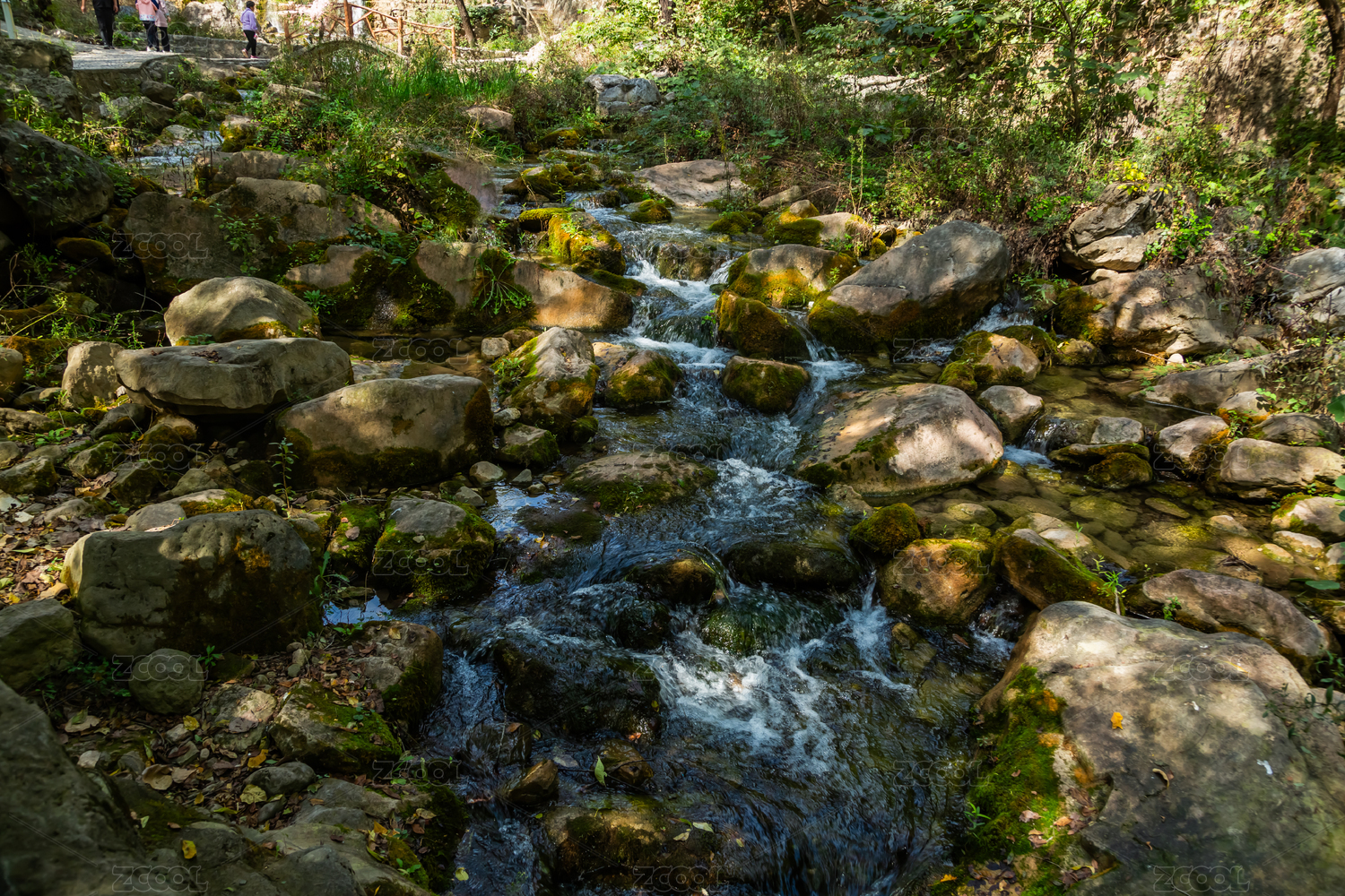 杭州灵隐寺 绿意盎然的溪水瀑布