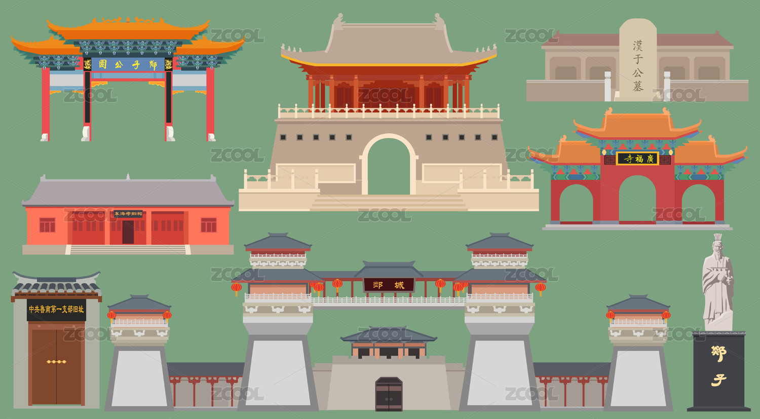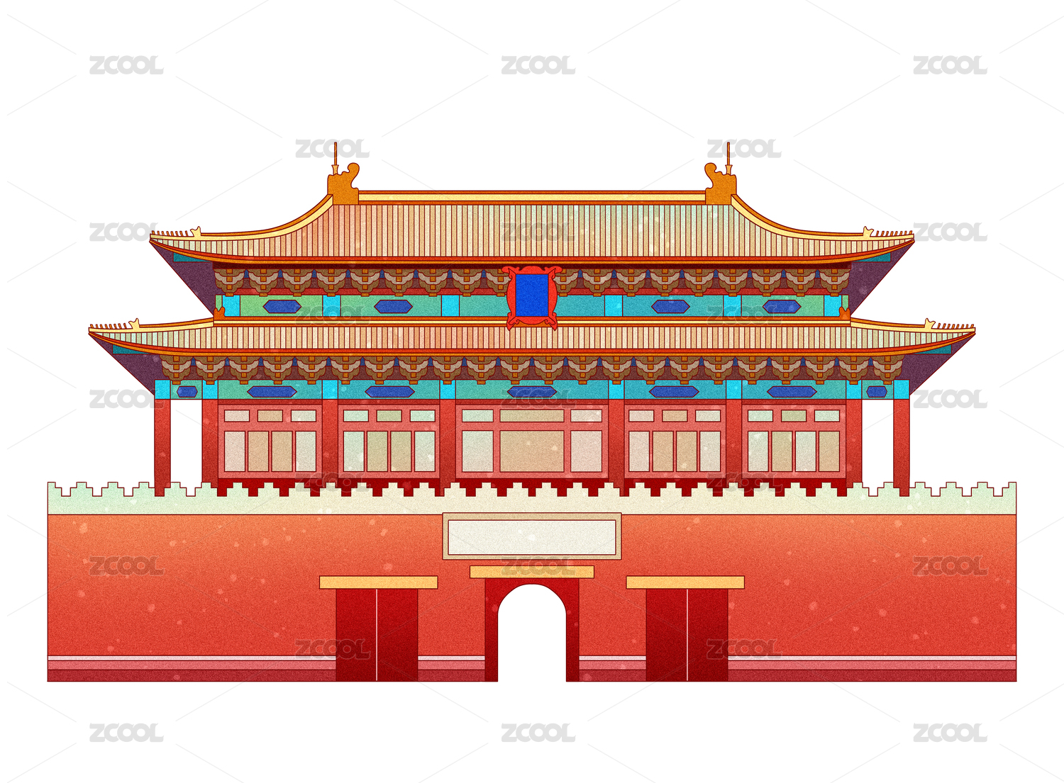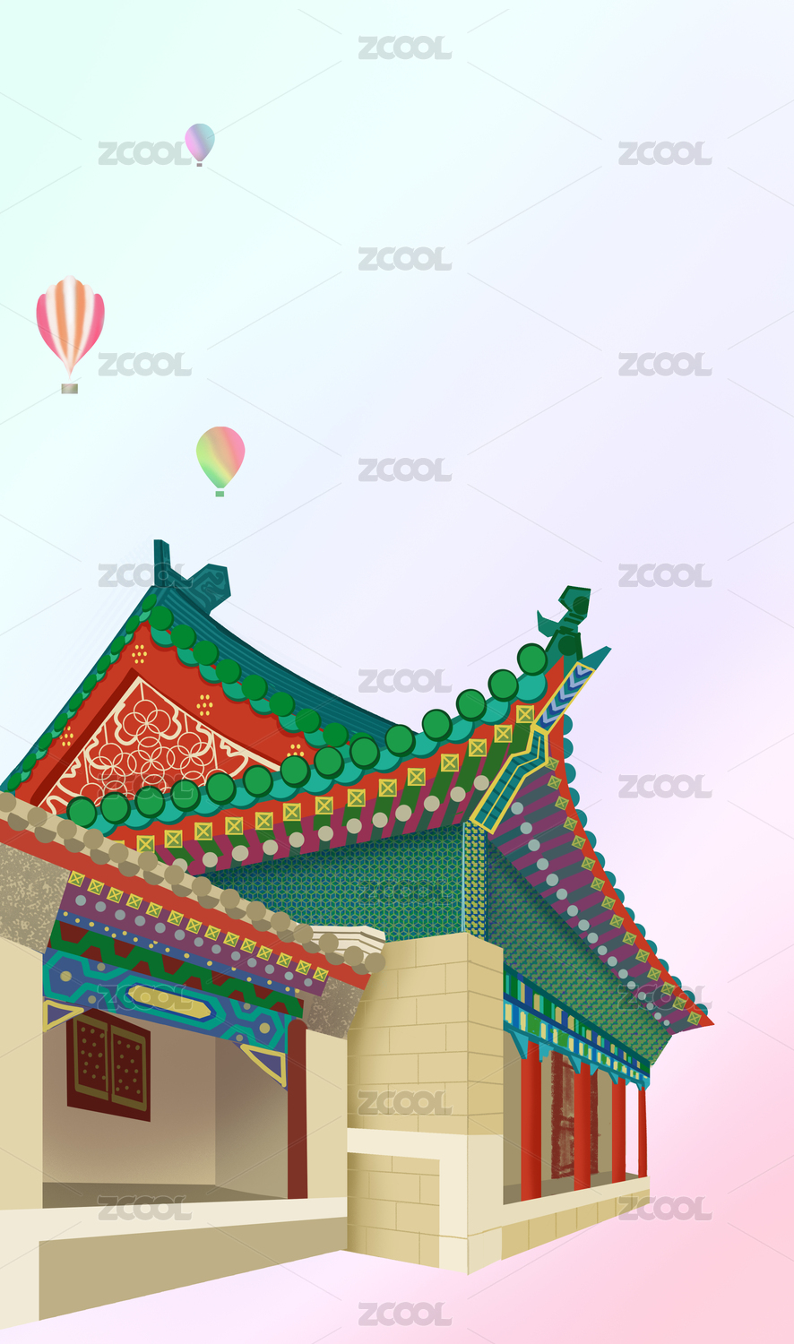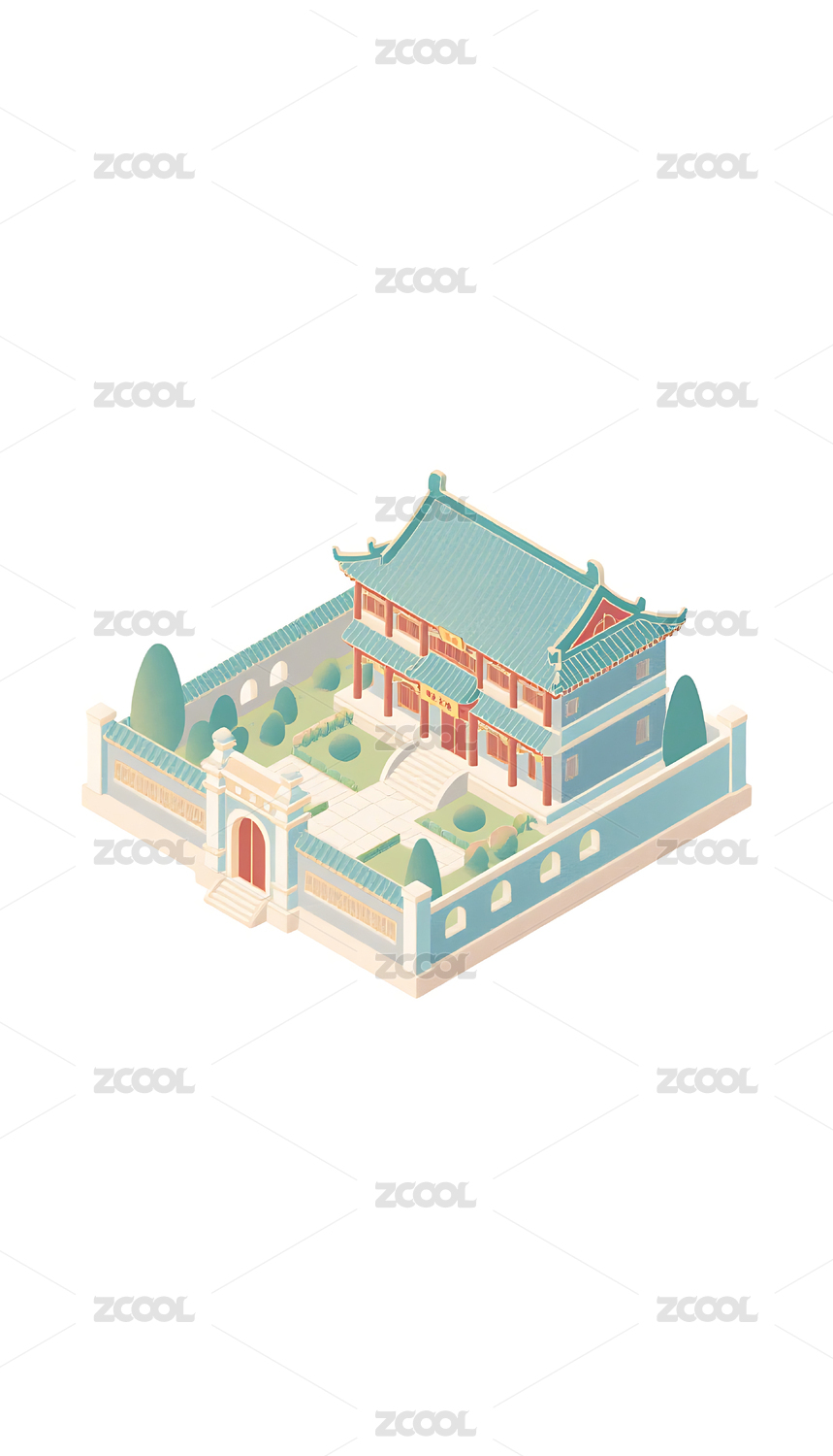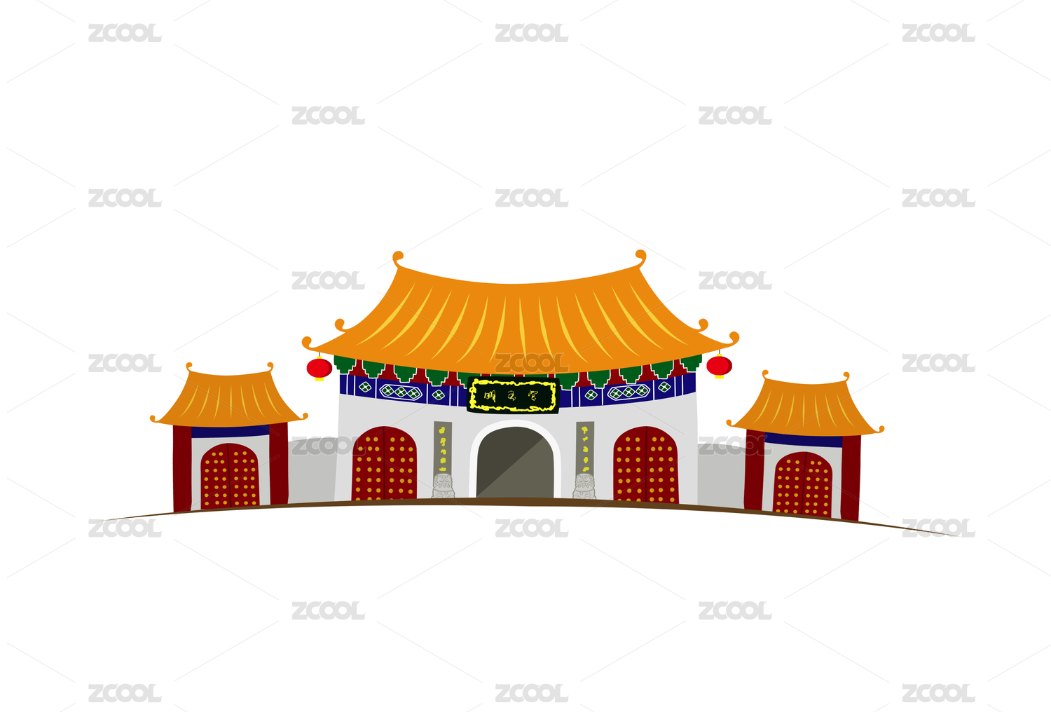 澳门中国风复古地标妈祖阁旅游矢量插画建筑