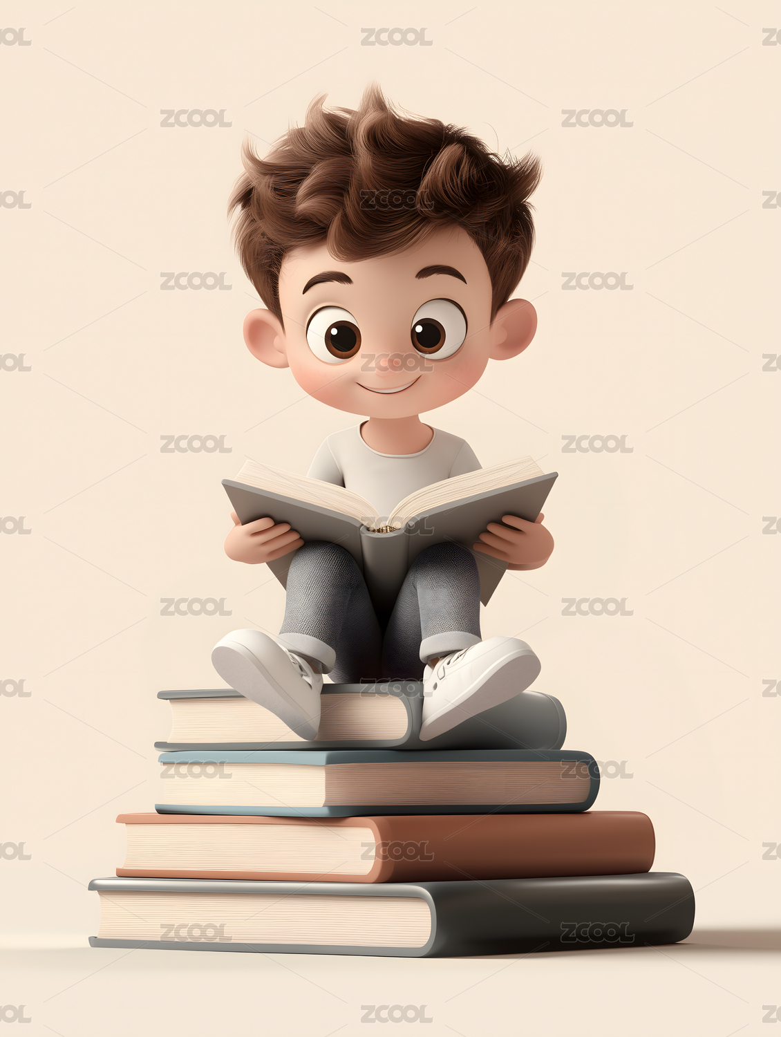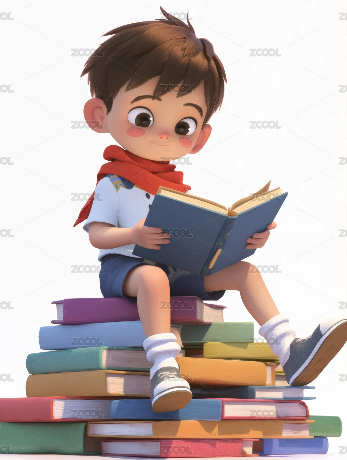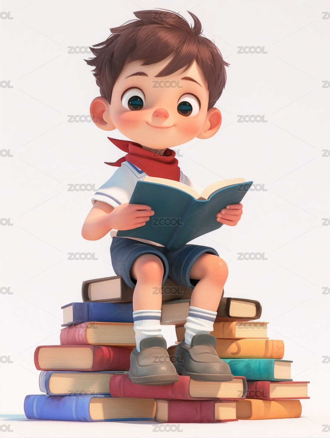 3D卡通男孩正在读书