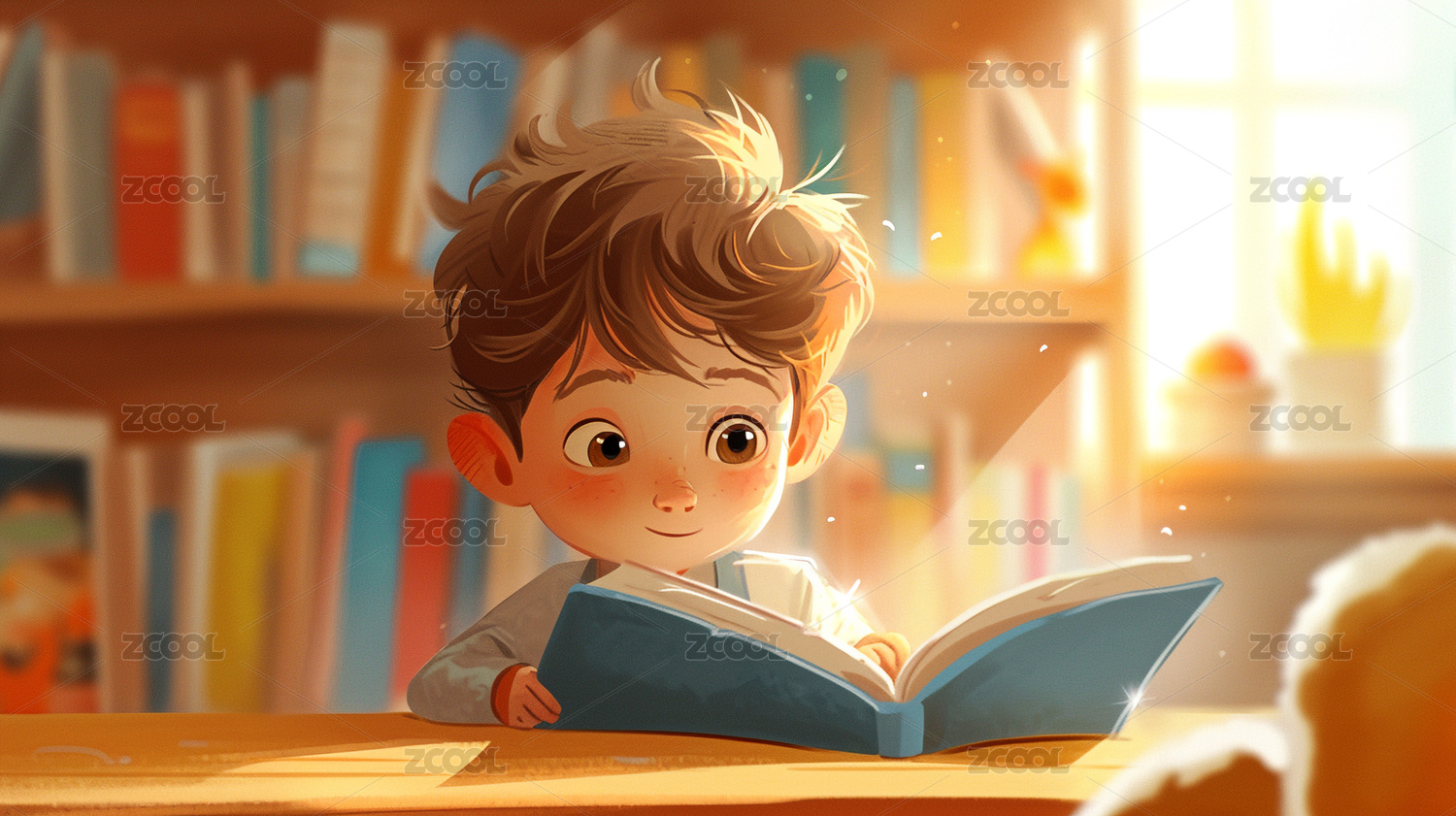 图书馆卡通小男孩