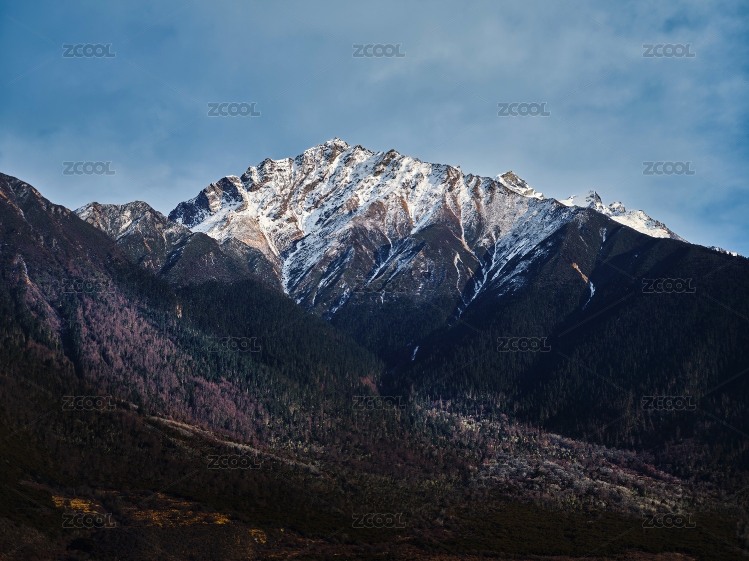 中国西藏索松村冬季观赏南迦巴瓦峰日照金山