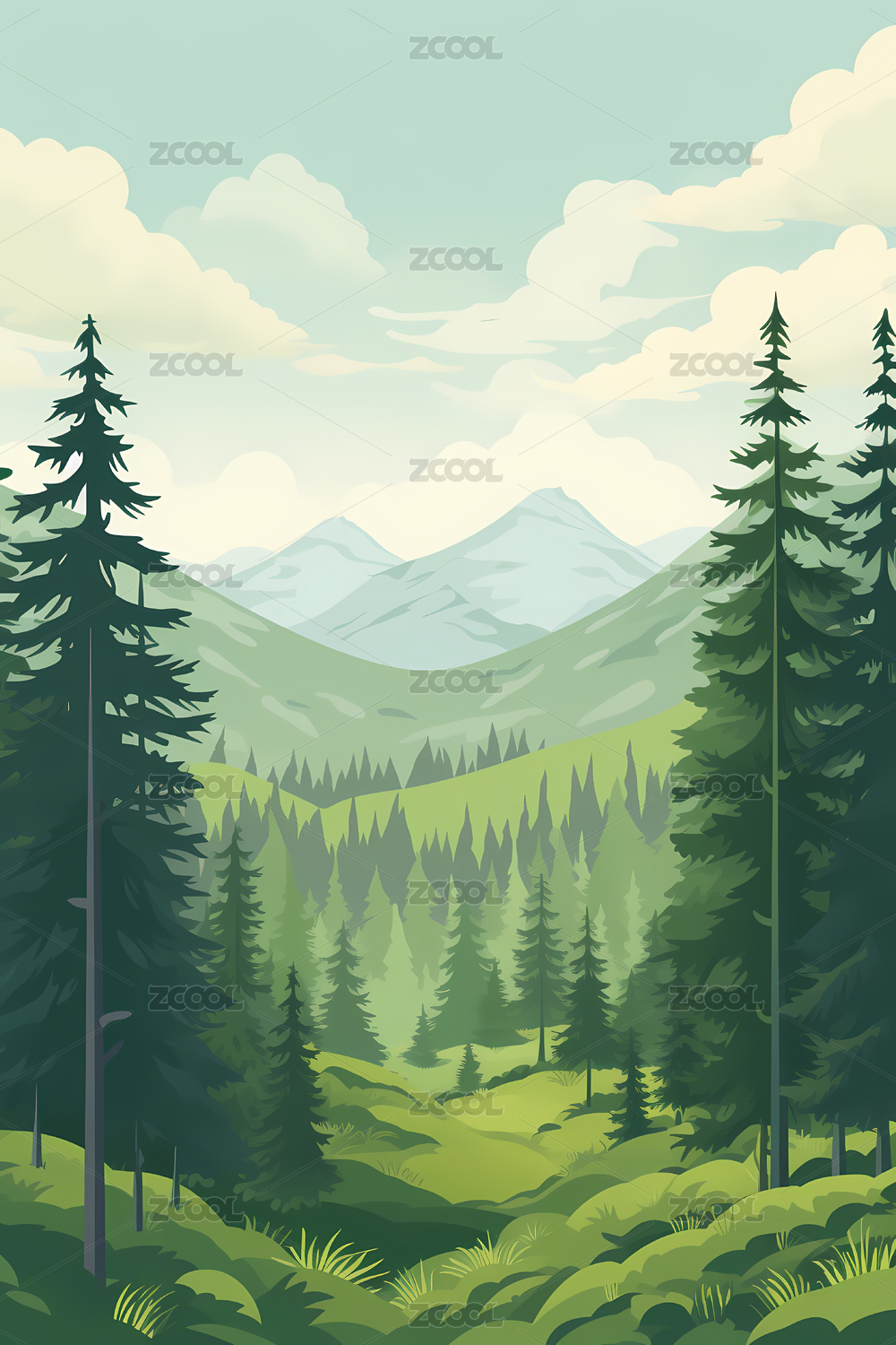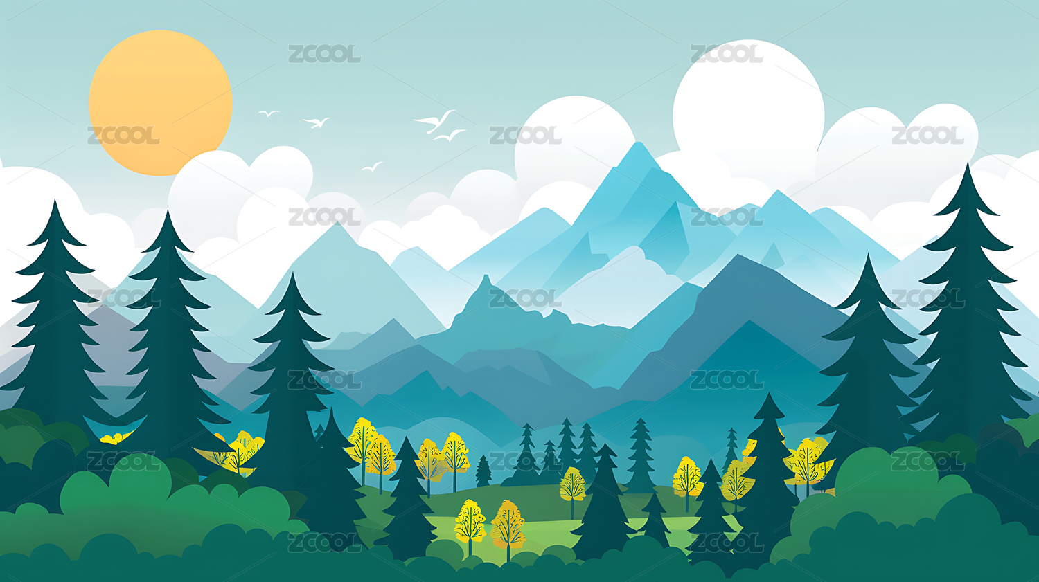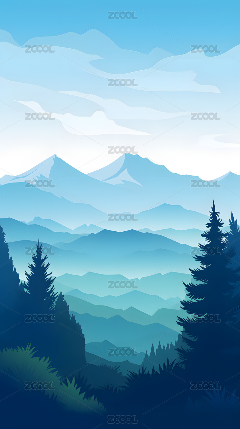 山,森林,绿色,蓝色,景观,海报,手机,背景,数字,设计