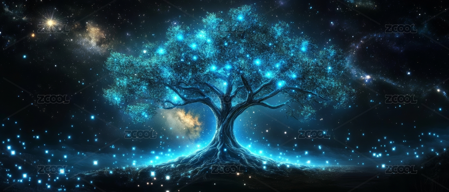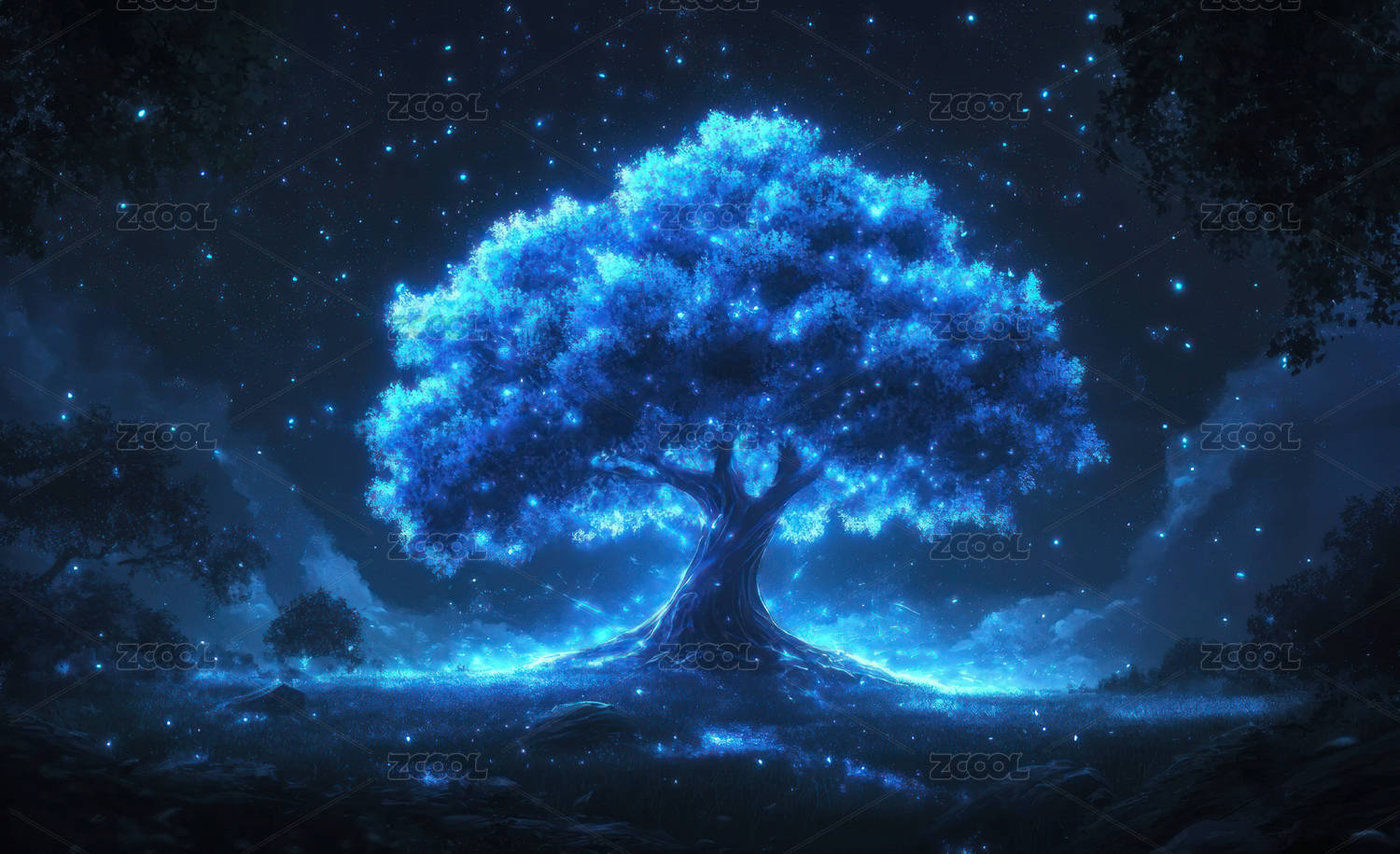 科幻,蓝色,发光,树,星星,灯,树枝,植物,闪烁,自然