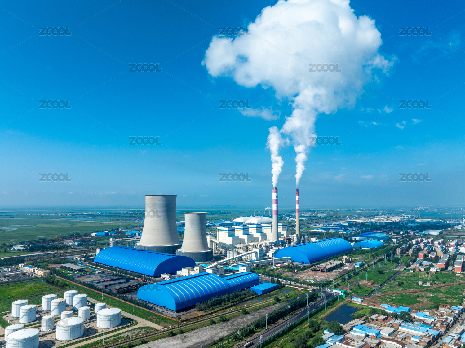 无人,城市,航拍视角,工厂,工业,工业园,烟囱,污染,空气,空气污染
