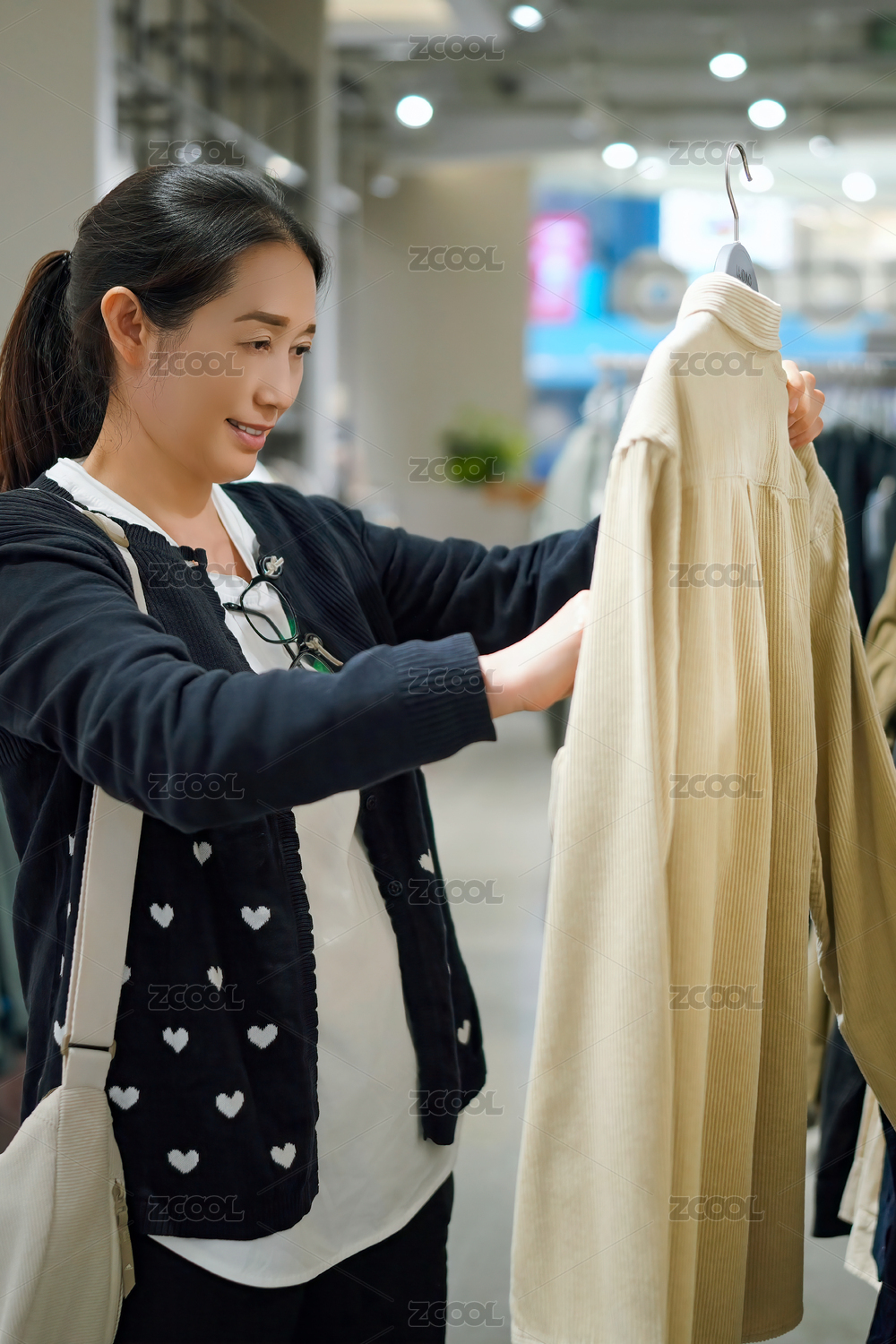 年轻女子在现代零售服装店购物
