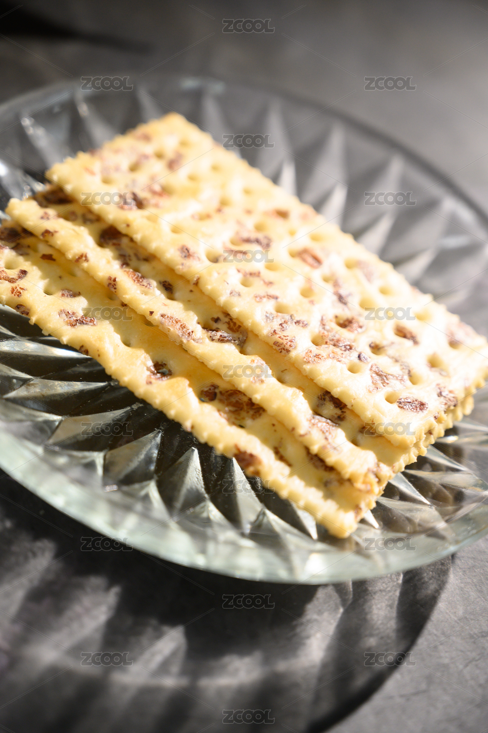 桌面上的盘子里的美味可口的黑麦苏打饼