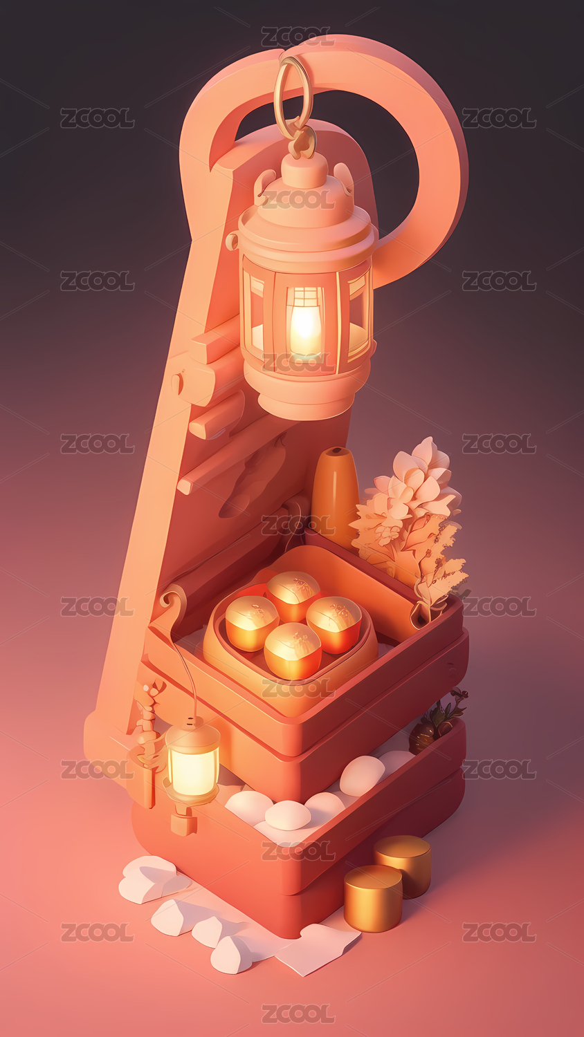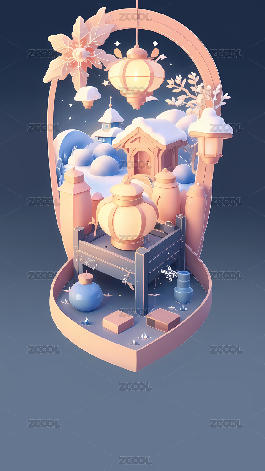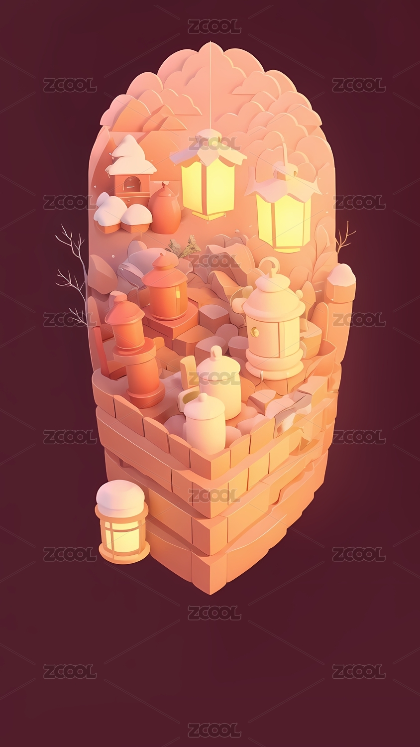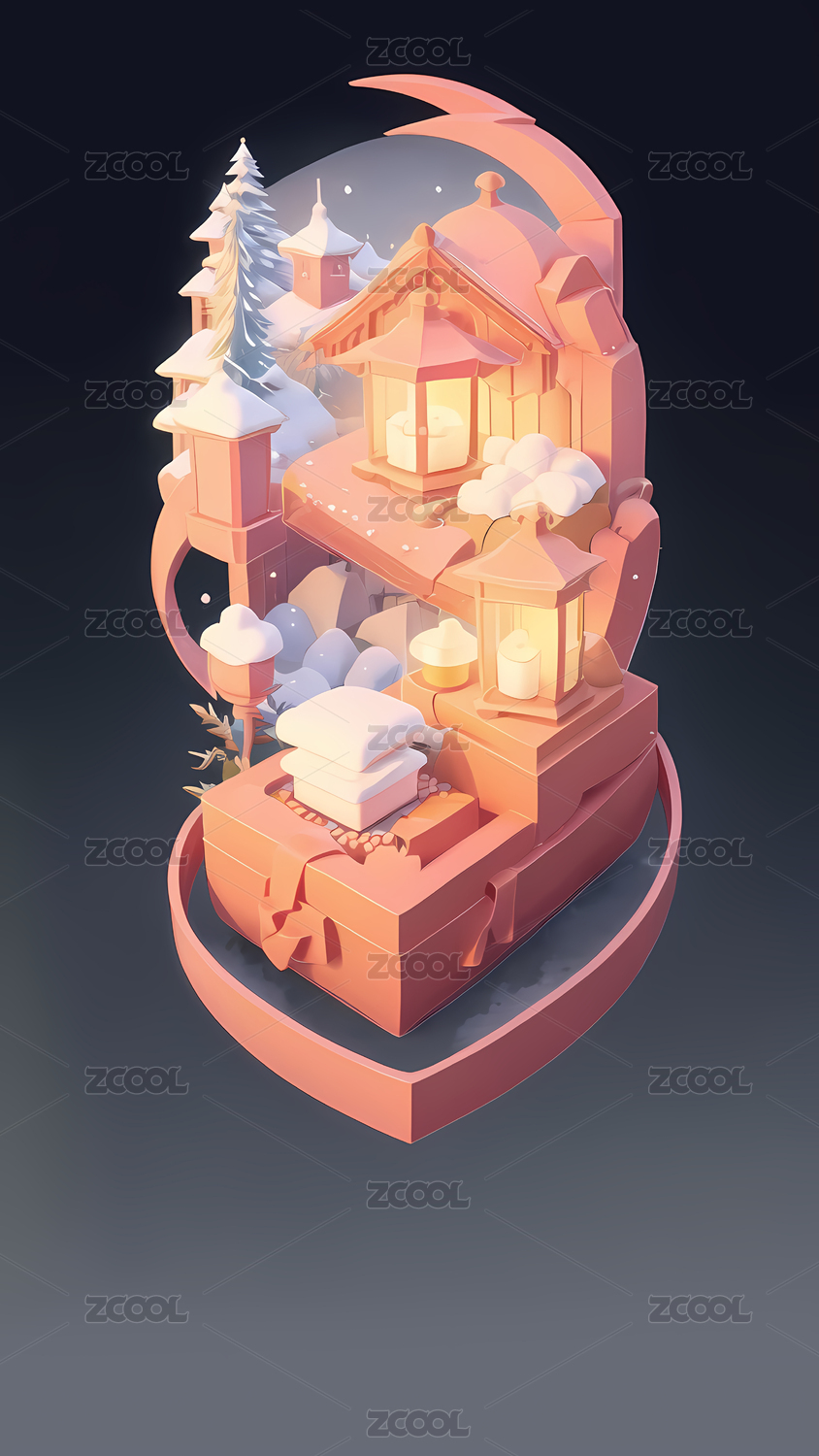 原画黑底奇幻魔幻欧式小屋3D卡通立体插画