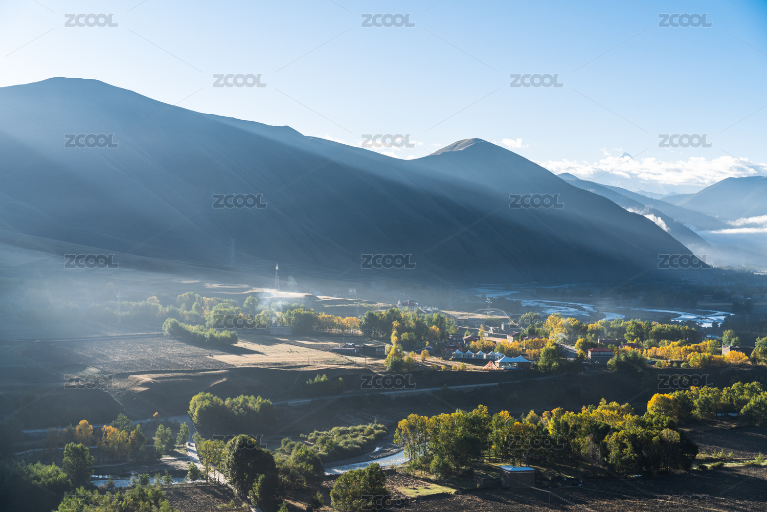 中国西藏傍晚的山川河流风光
