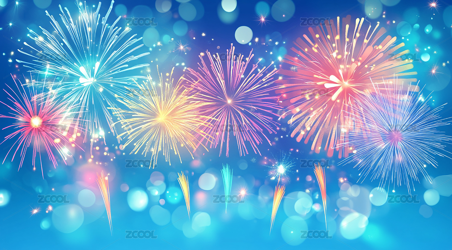 彩色烟花节日庆典浪漫绽放艺术装饰插画