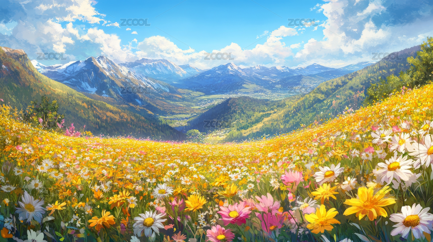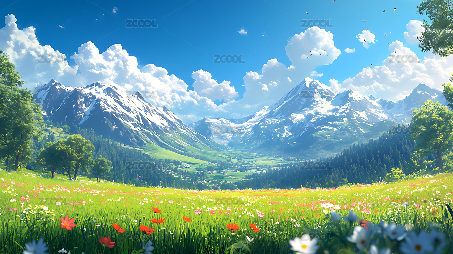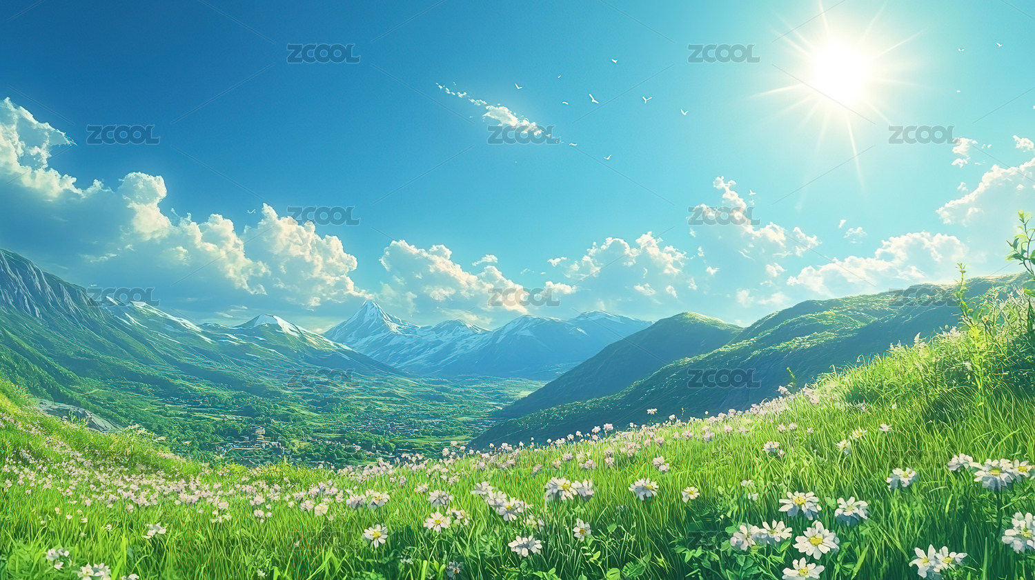 天空,云朵,高山,流水,花草,风景,蓝天,白云