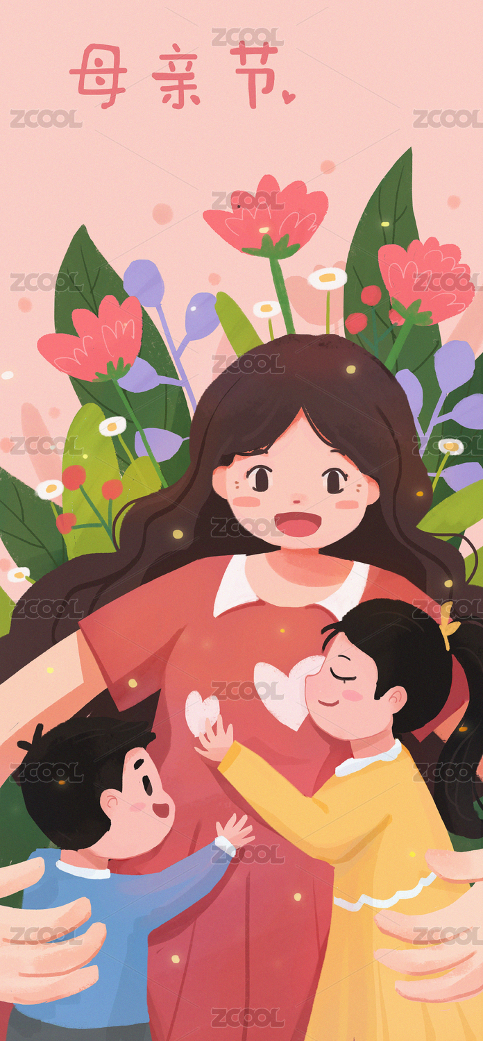母亲节抱着宝宝的妈妈被鲜花簇拥