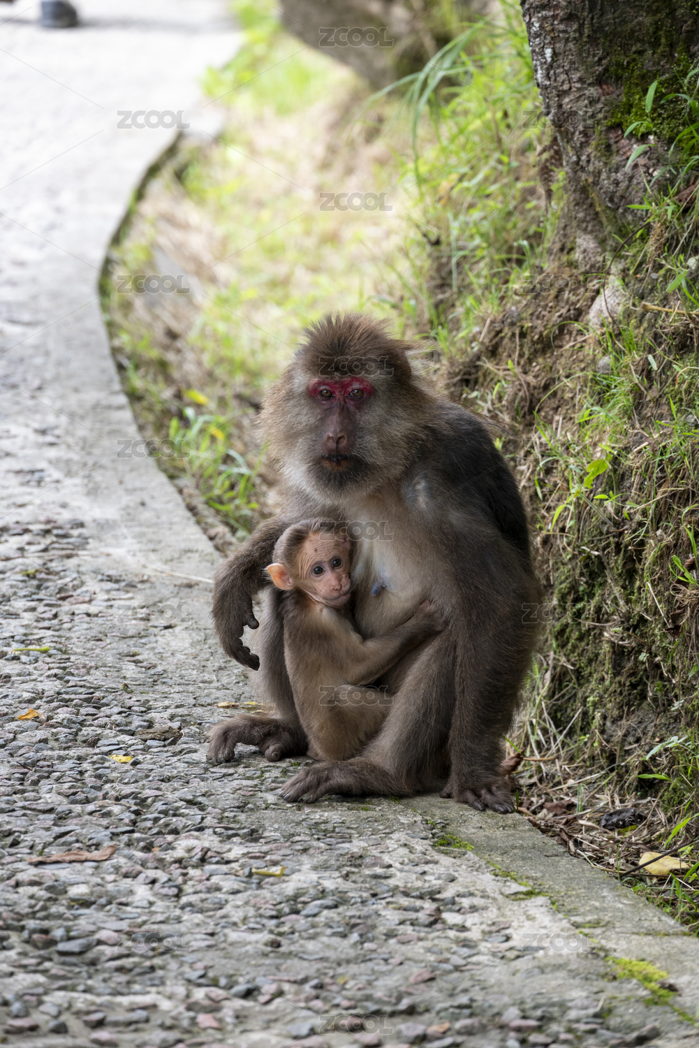 梅花山保护区在丛林中自由活动的猴子,中国福建上杭