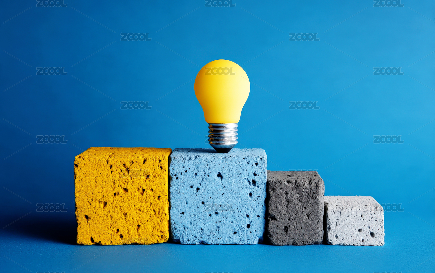 穿着西服的男士站在四周放木块爬梯的灯泡上