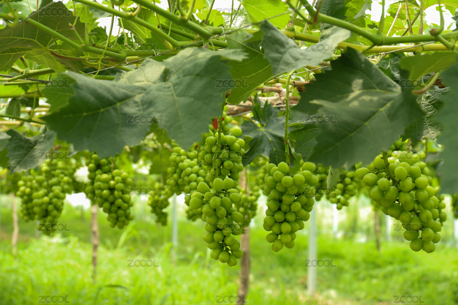 葡萄园里一串串未成熟的绿葡萄