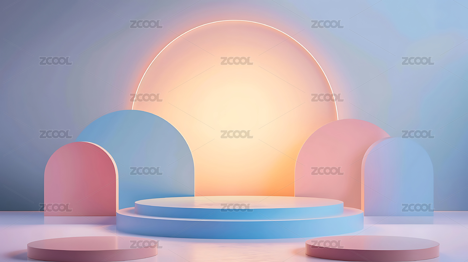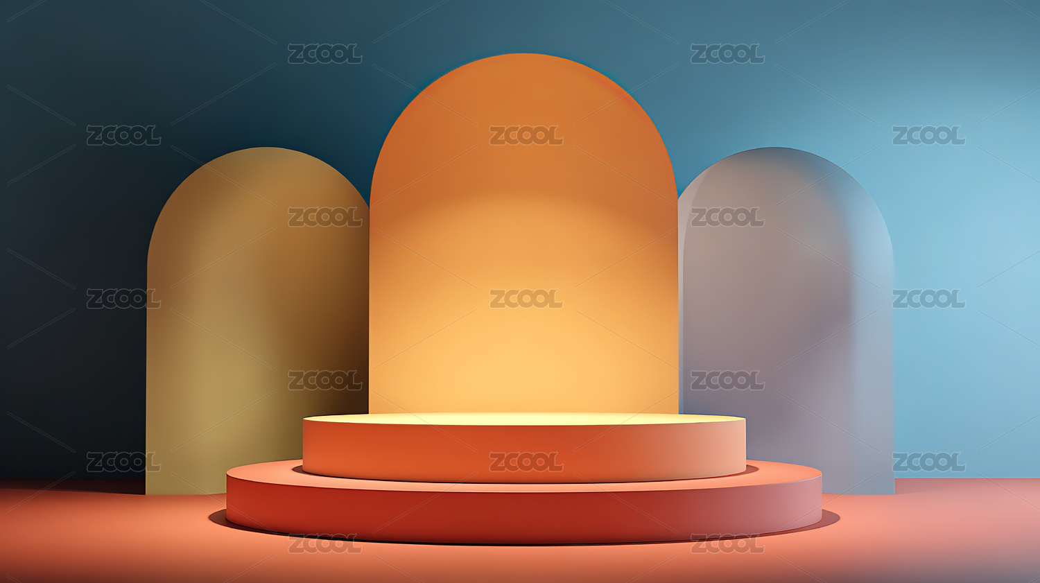 简约弧形背景下的白色圆台