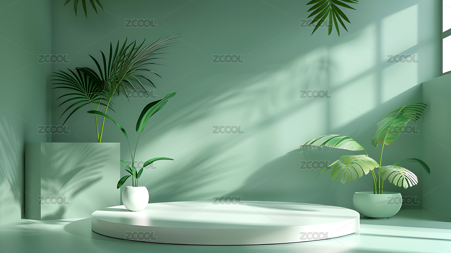3D展示台绿色植物,电商产品展台极简主义
