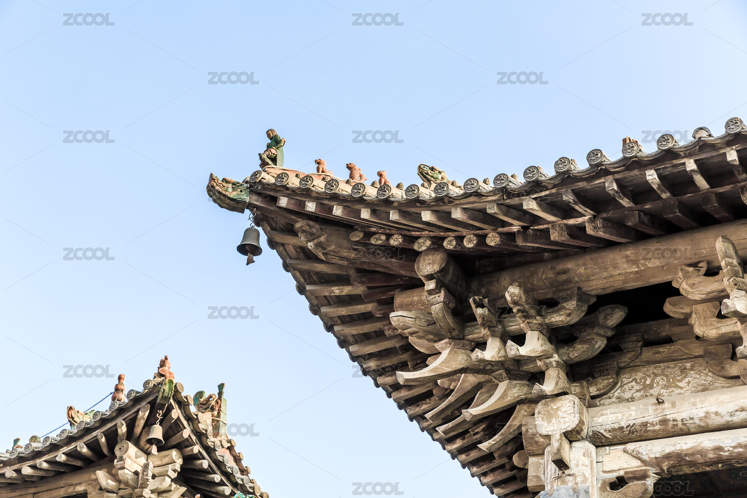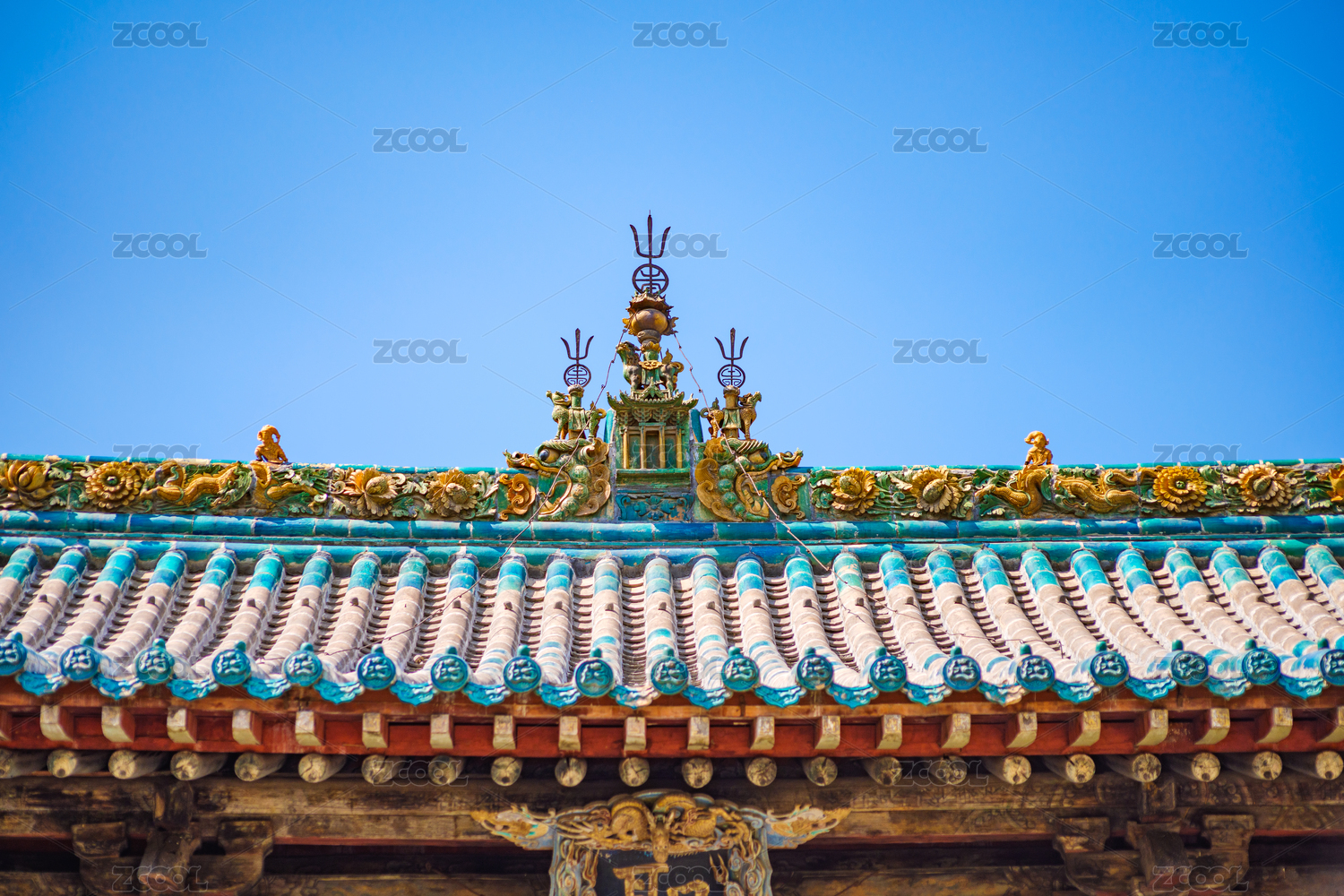 中国山西省洪洞县广胜寺古建筑歇山顶琉璃构件